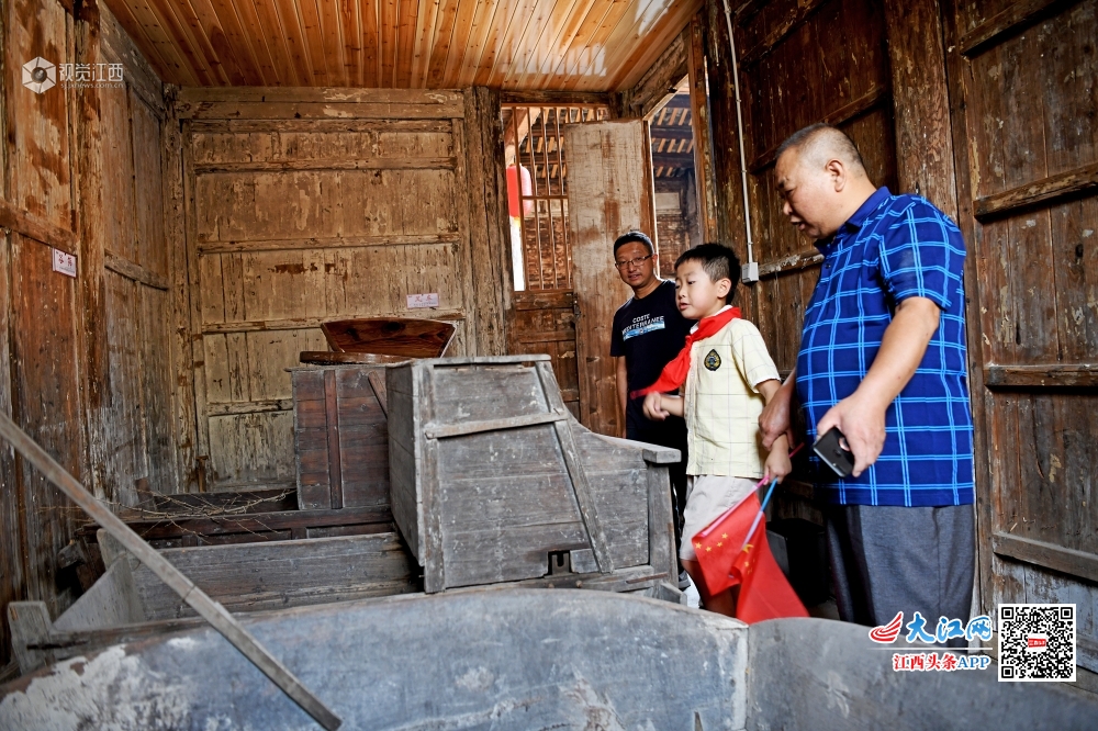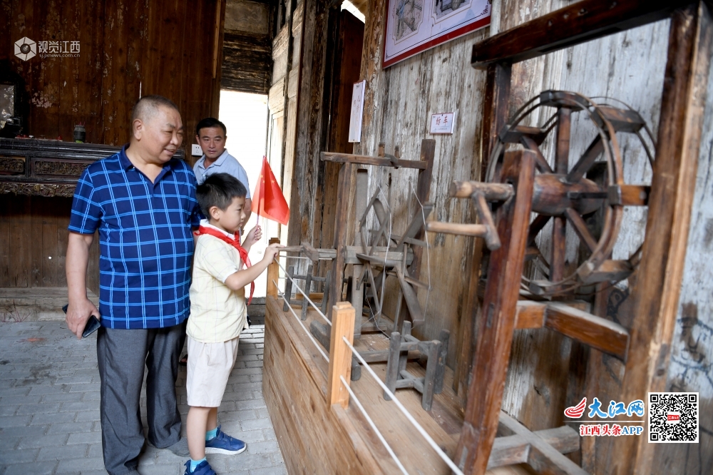 2019年10月5日,游客正在江西省上饶市铅山县陈坊乡锁子桥秀美乡村农耕记忆陈列馆参观农业农村生活、生产用具。近年来,上饶在推进乡村振兴战略中,大力发展乡村旅游产业,积极引导推动广大村民参与旅游项目,一个个“乡村游”景区美了村庄,富了村民,乐了游客。