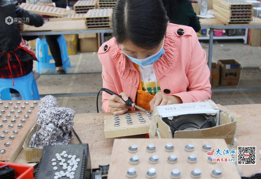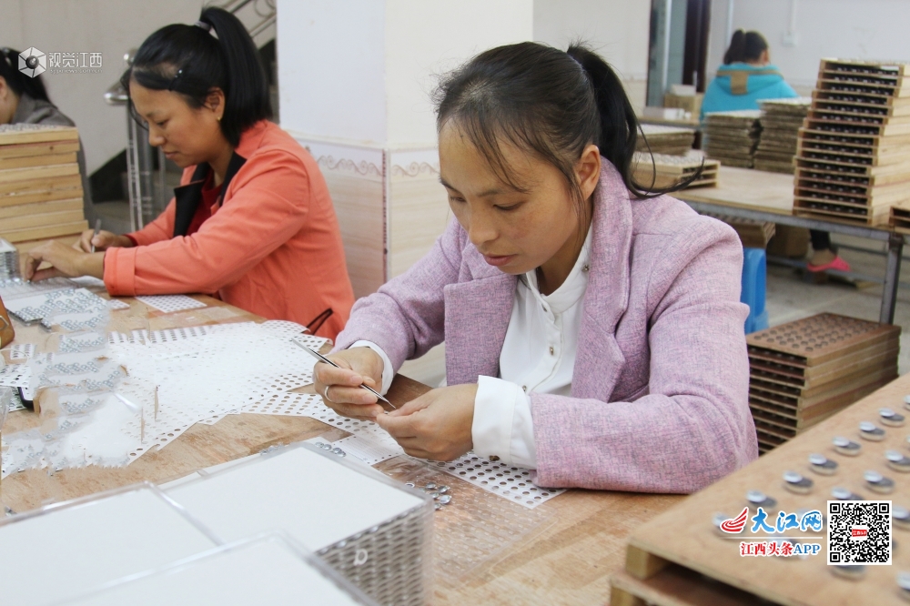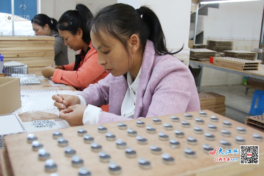 2019年10月11日,江西省遂川县左安镇30多名农村妇女在社区一家加工厂里进行耳塞制作。近年来,江西省遂川县针对农村妇女,采取技能培训、岗位上门、资金扶持等举措,引导她们走进工厂车间。目前,全县七十余家企业、加工点设立了“扶贫车间”,有效增加了农村妇女的收入。