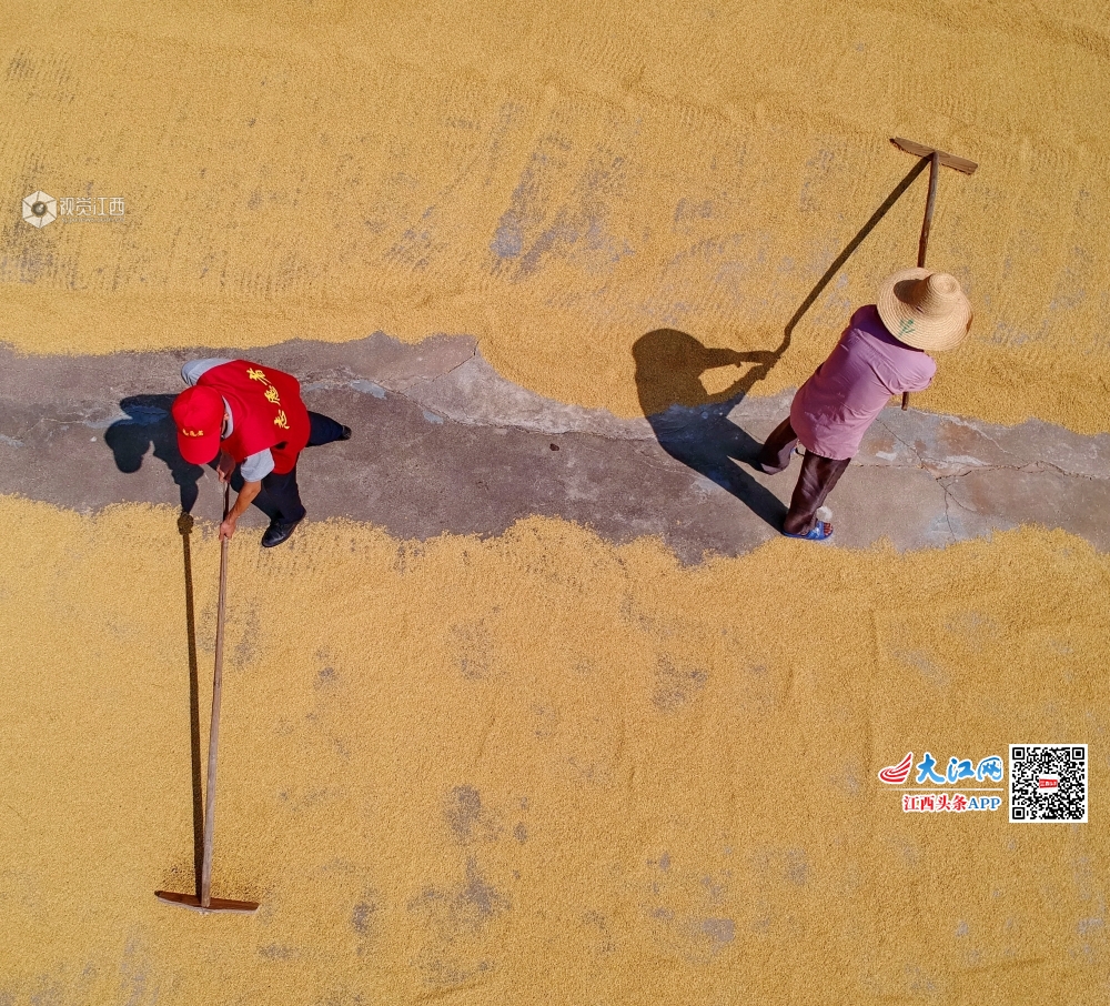 10月9日,江西省赣州市会昌县周田镇下营村党员志愿者在帮助缺劳力贫困户翻晒稻谷。秋收农忙时节到来,会昌县结合“不忘初心、牢记使命”主题教育工作开展,及时组织党员干部志愿服务队到结对帮扶的乡镇助农秋收作业,帮助贫困户、留守老人以及缺劳力户及时抢收成熟的稻谷,确保水稻丰收农户增收。