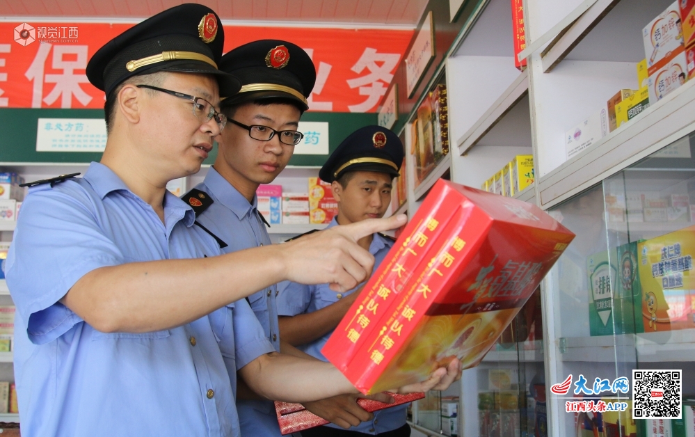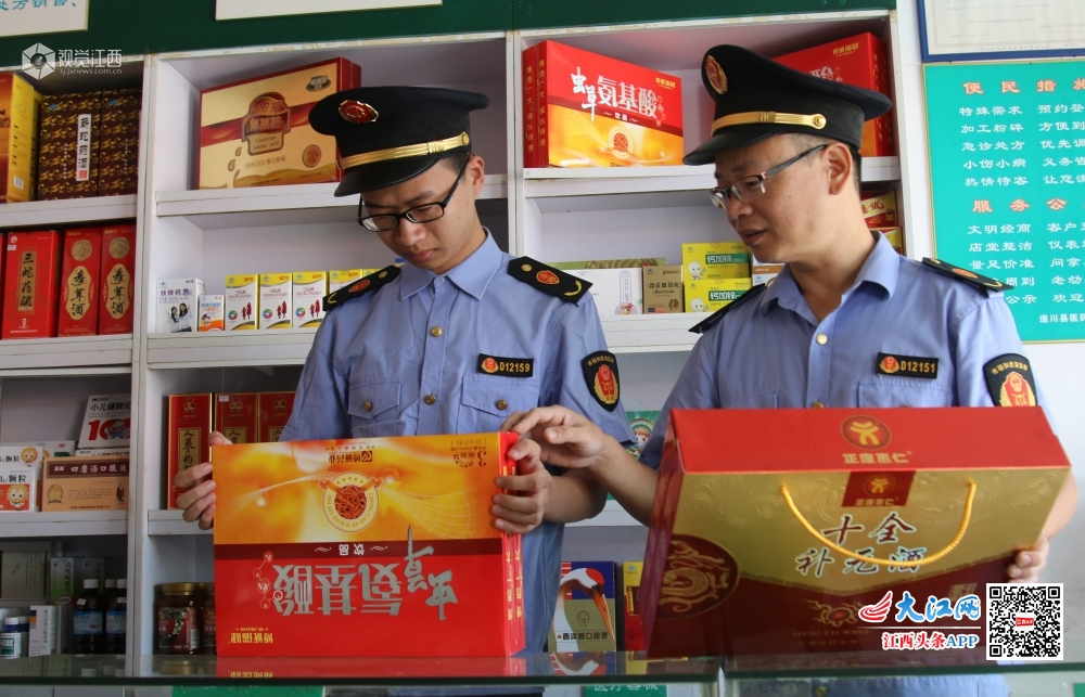 2019年10月14日,江西省遂川县市场监管局执法人员在一家药店保健食品经营专柜检查。为治理保健食品经营乱象,强化保健食品监管,排查食品安全隐患,进一步规范辖区保健食品市场秩序,遂川县市场监督管理局对辖区内保健食品经营单位进行了专项检查,重点对保健食品的标签、说明书、生产日期等情况进行检查,净化了保健食品市场,保证市民购买到放心的保健食品。