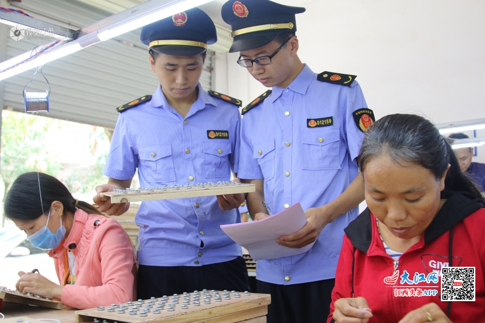 2019年10月15日,江西省吉安市遂川县市监干部在该县左安镇了解“扶贫车间”生产经营情况。近年来,遂川县汇聚社会各界力量,强化政策和服务保障,创建了“扶贫养殖车间”“扶贫种植车间”“扶贫加工车间”“休闲旅游扶贫车间”等多种扶贫车间模式,全县各部门“零距离”服务,4000多名贫困户在家门口实现就业,助推了帮扶对象脱贫致富。