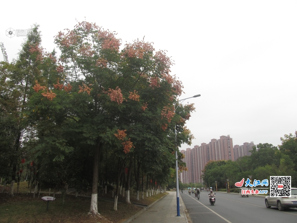 深秋时节,安福县通道两边、城区、公园的红色或淡红色的栾树果子挂满树梢,绚丽悦目,明艳动人。栾树属落叶乔木,花期7-9月,果期9-10月,秋果呈红色,酷似串串红色的灯笼,密密麻麻的蒴果像无数的小铃铛,粉红、鹅黄、嫰青,各色相间,像火苗在风中跳动,异样的美丽。