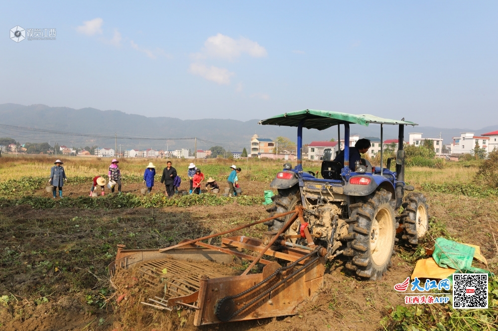 2019年11月7日,莲花县高洲乡朱家村华辉农业专业合作社种植基地,村民正在收获红薯,今年该村采取公司+合作社+农户的形式种植优质红薯200亩,公司提供种苗并负责销售,村民通过入股与务工获取收益,据初步估算,仅种植红薯一项,合作社村民可增收500多元。