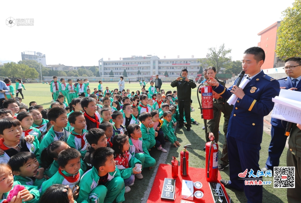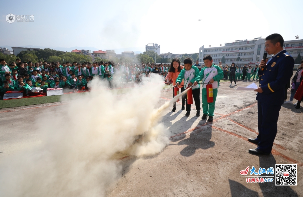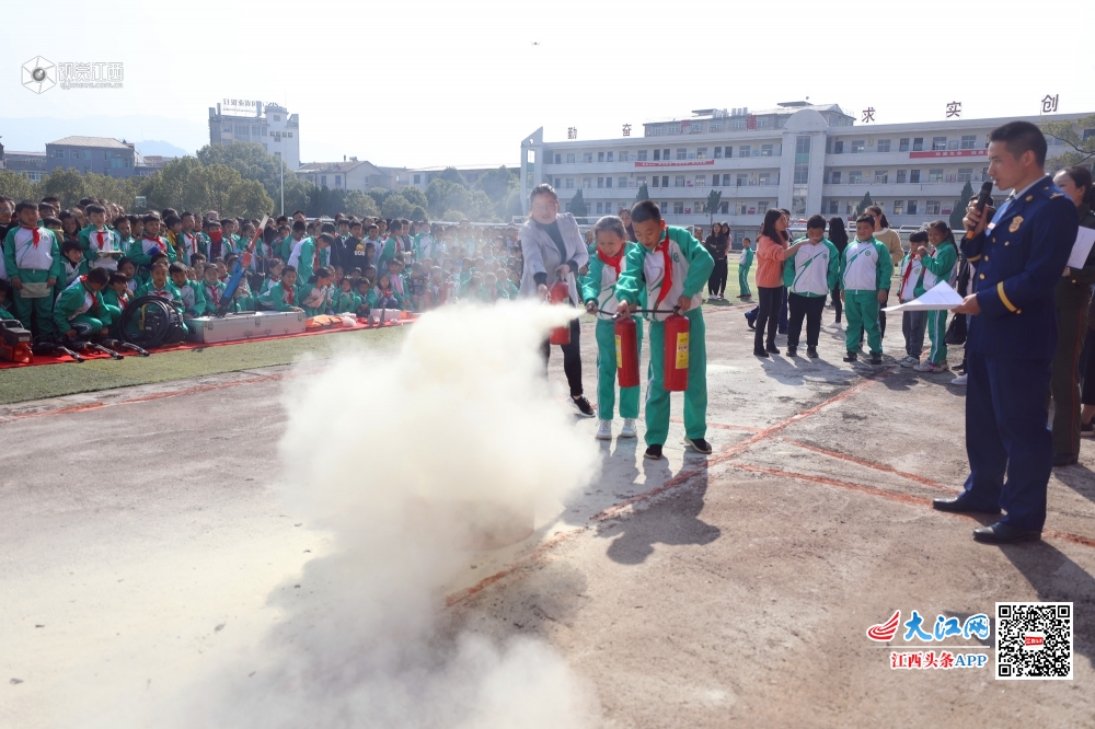 11月8日,莲花县城厢小学的师生在消防员的指导下正在使用灭火器灭火。当天,莲花县消防救援大队将消防车开进校园,为学校的师生们送来了一堂生动的消防安全课。通过观看消防警示教育片、组织疏散逃生演练、学习使用灭火器、参观体验消防器材装备、消防知识问答等,增强师生们的消防自救意识和自我?;ぜ寄?。