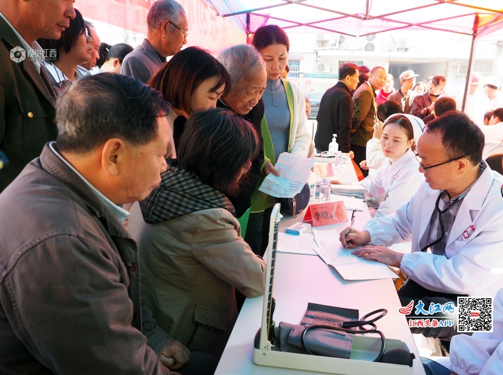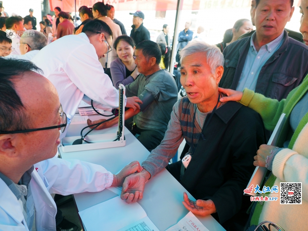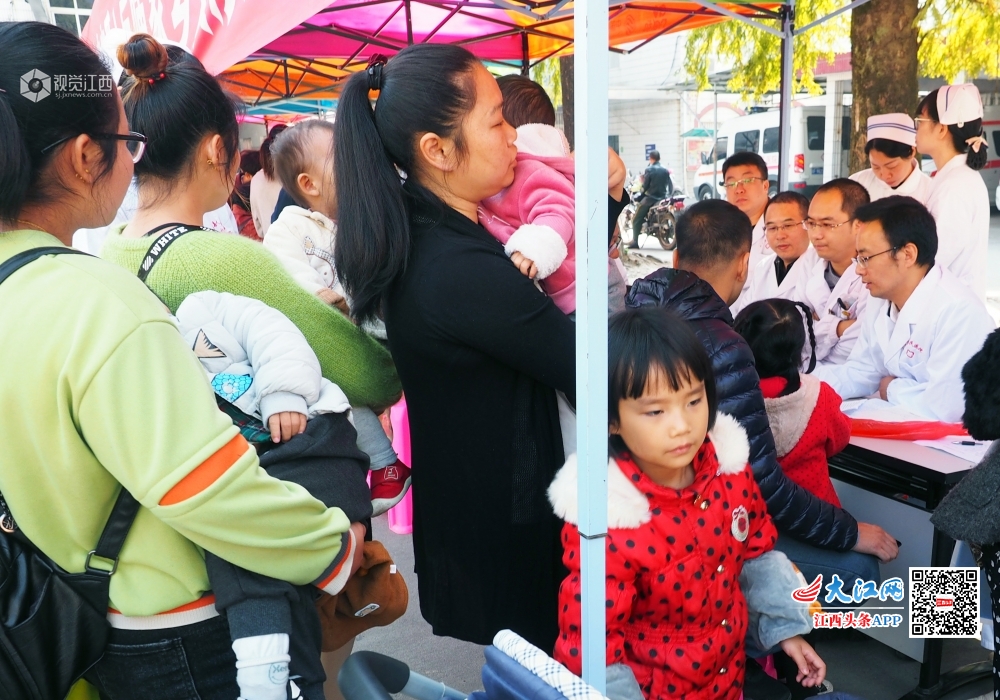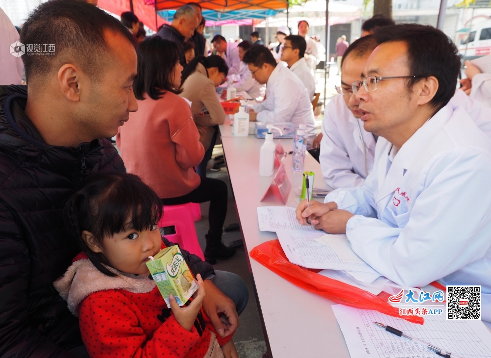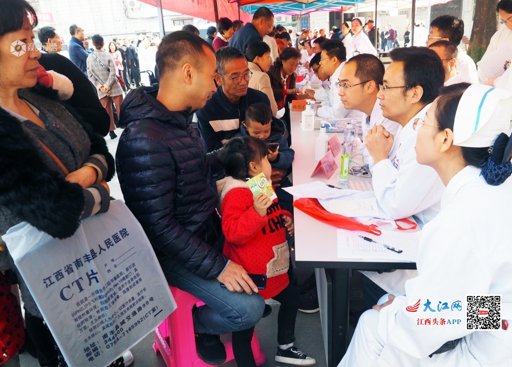 为了回报家乡人民,2019年11月9日,来自中山大学第一附属医院、深圳医院等单位的在粤抚籍医疗专家团10名专家在江西省南丰县人民医院广场上举行大型义诊活动,服务内容涵盖了儿科、妇科、中医科、肿瘤外科、内科、放疗、影像等专业,使患者在家门口就能享受到全国一流的医疗服务。图为专家义诊活动现场。