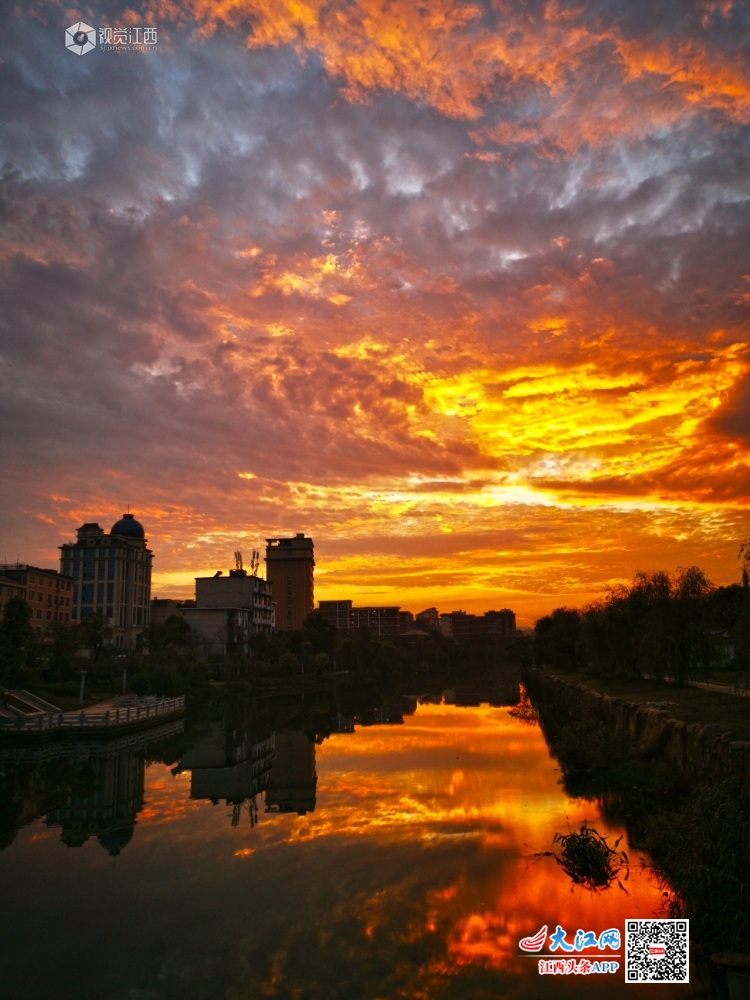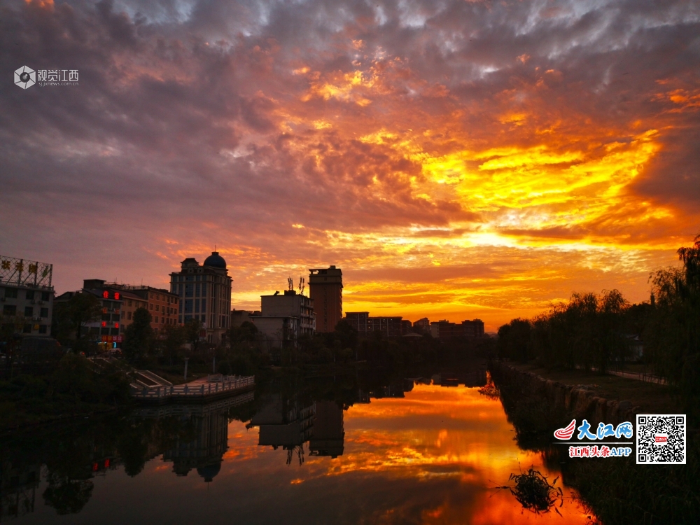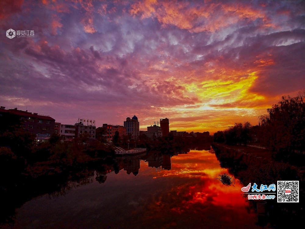 2019年11月11日,在江西省上饶市铅山县拍摄到的夕阳映照下绚丽美景,醉美如斯。