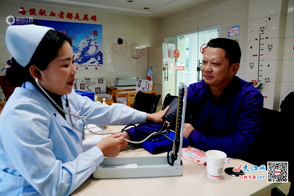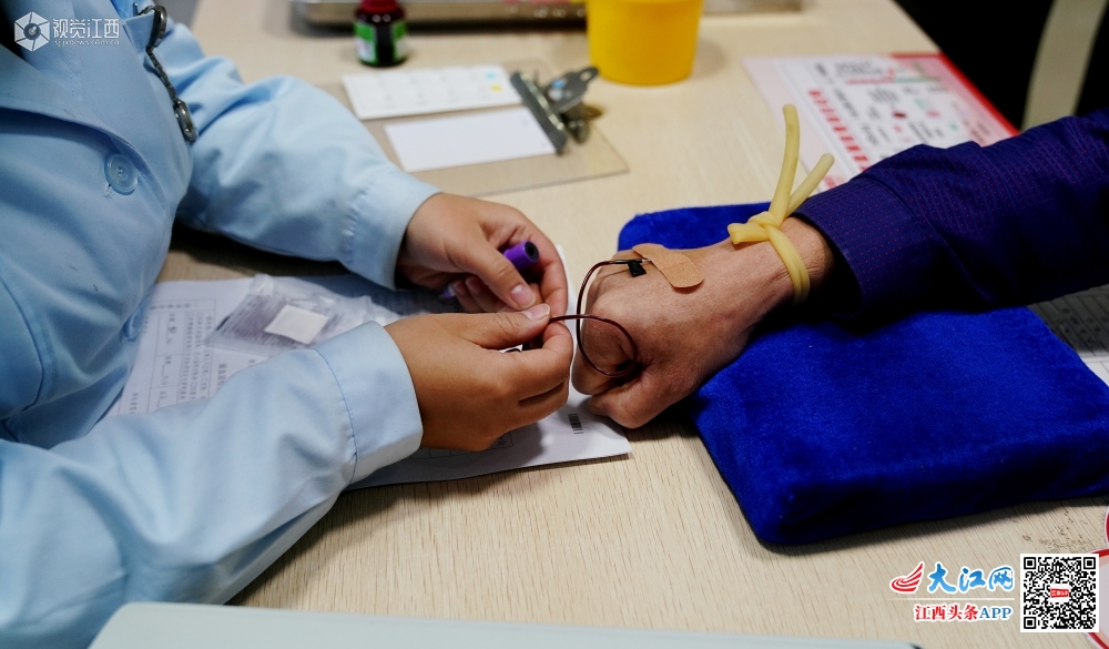 2019年11月21日,江西省上饶市铅山县退伍军人费麦生正在上饶市中心血站采集成分血(血小板),这是他第50余次的采集成分血了。从2011年以来,费麦生平均每年要捐献成分血5、6次,捐献总量10000余毫升。费麦生说:“以前,我都是捐献全血,2011年以后捐献成分血(血小板)以后,我发现捐献成分血间隔时间短,可以随时撸起袖子捐献热血拯救病人,自此我就选择了捐献成分血。”