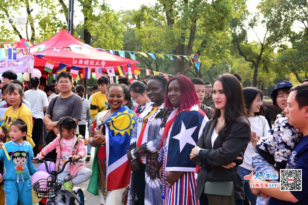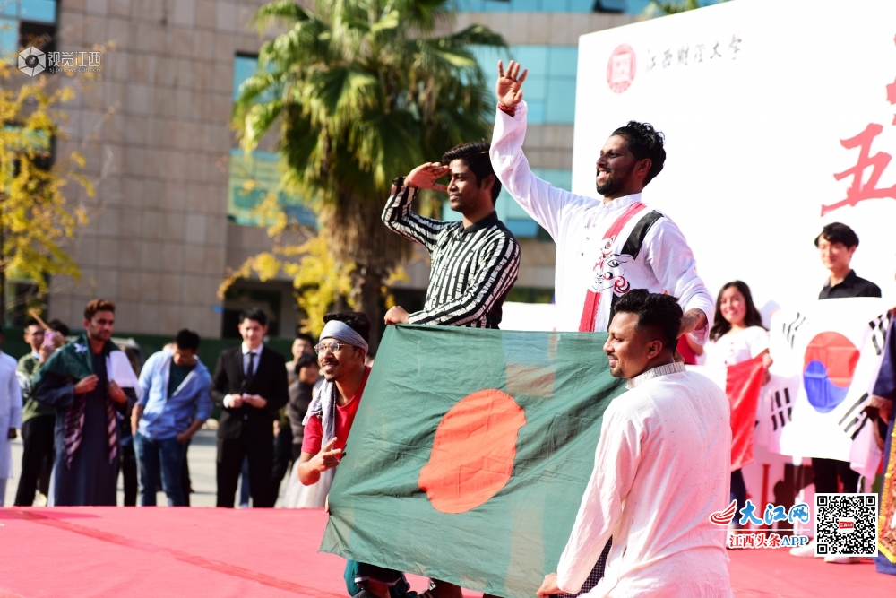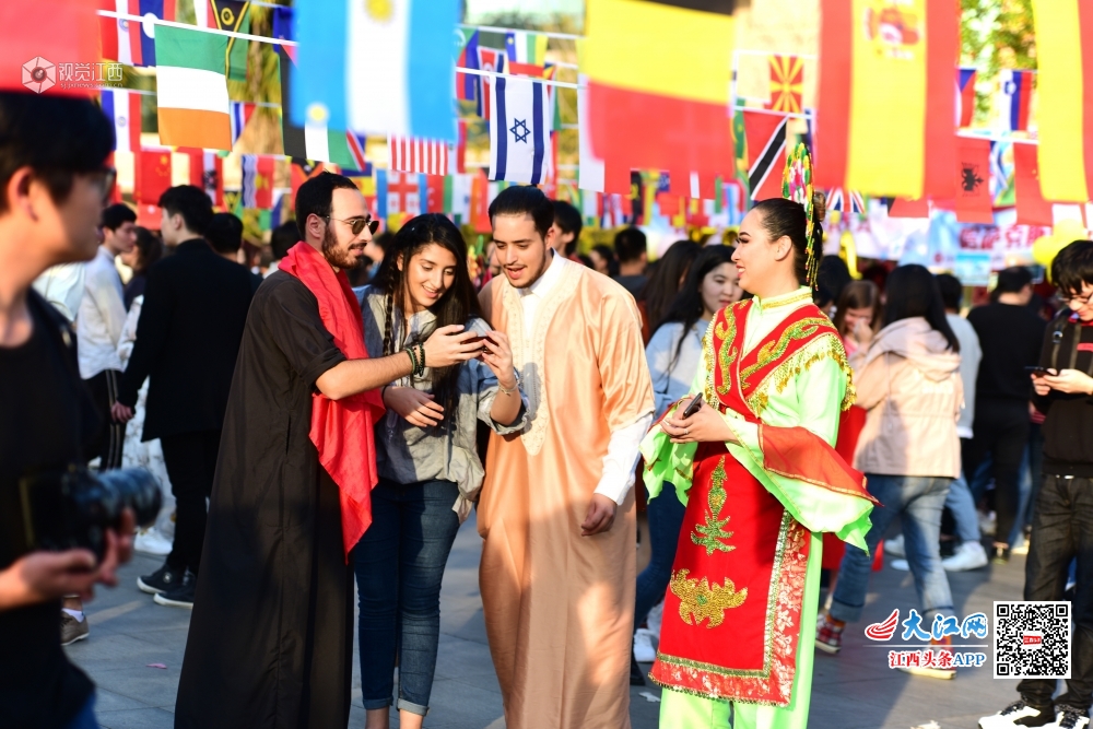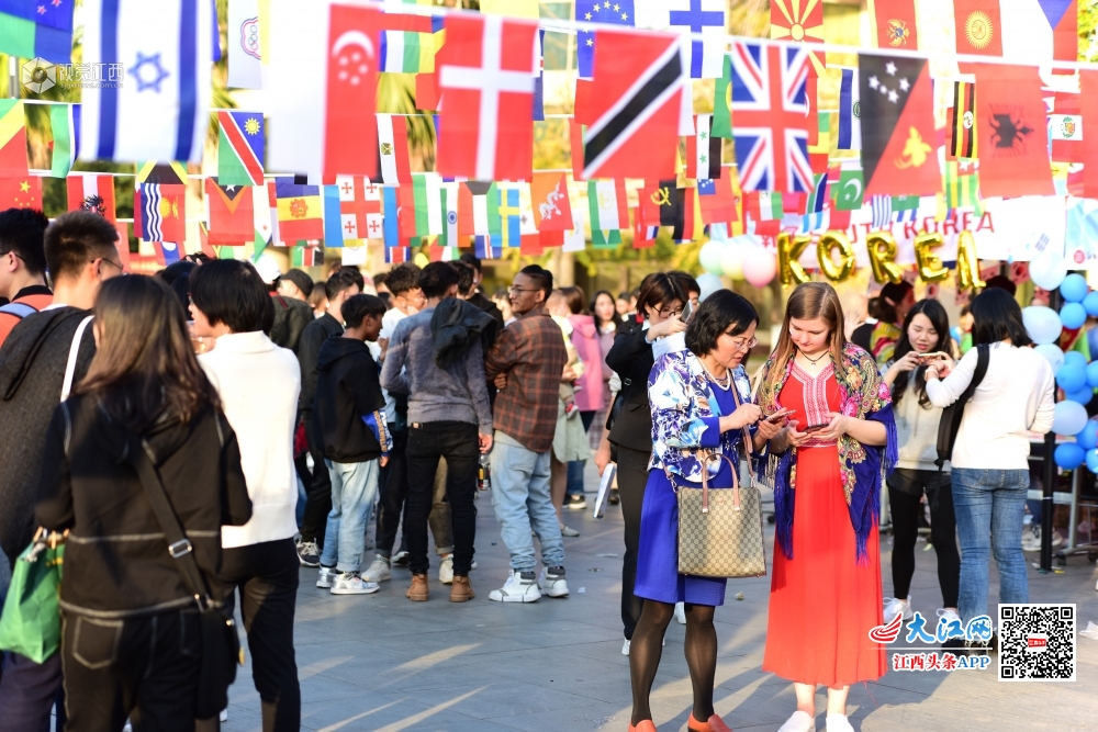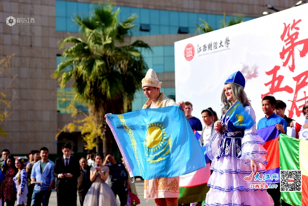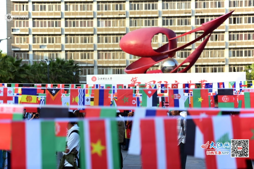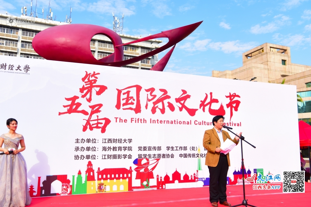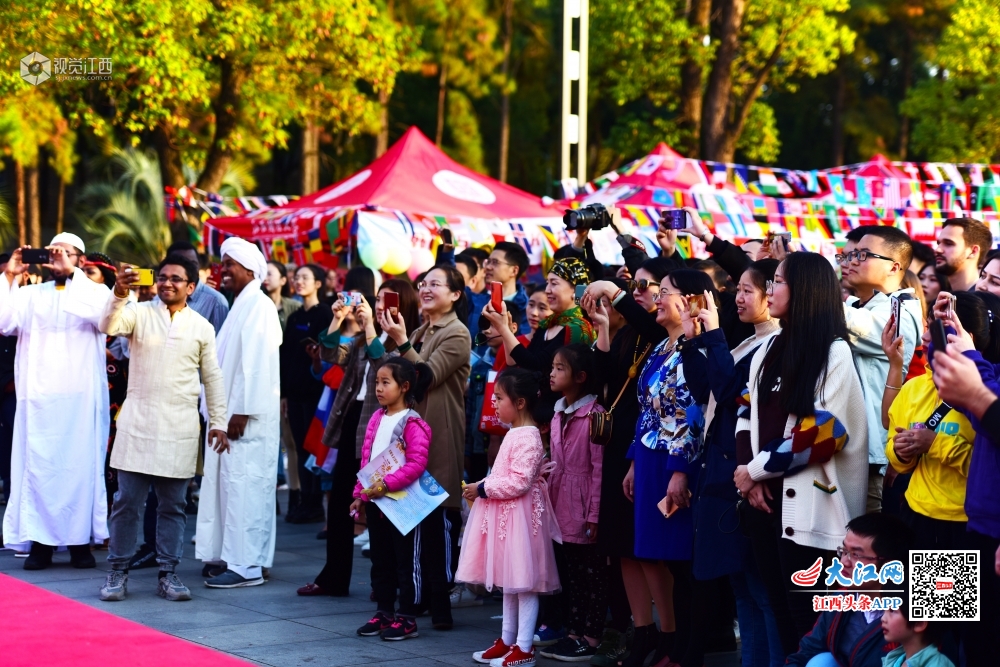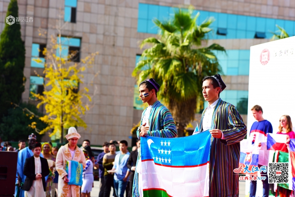 2019年11月23日,来自世界26个国家的中外师生近千人齐聚江西财经大学蛟桥园北区火炬广场,共同欢庆江西财经大学第5届国际文化节开幕。
