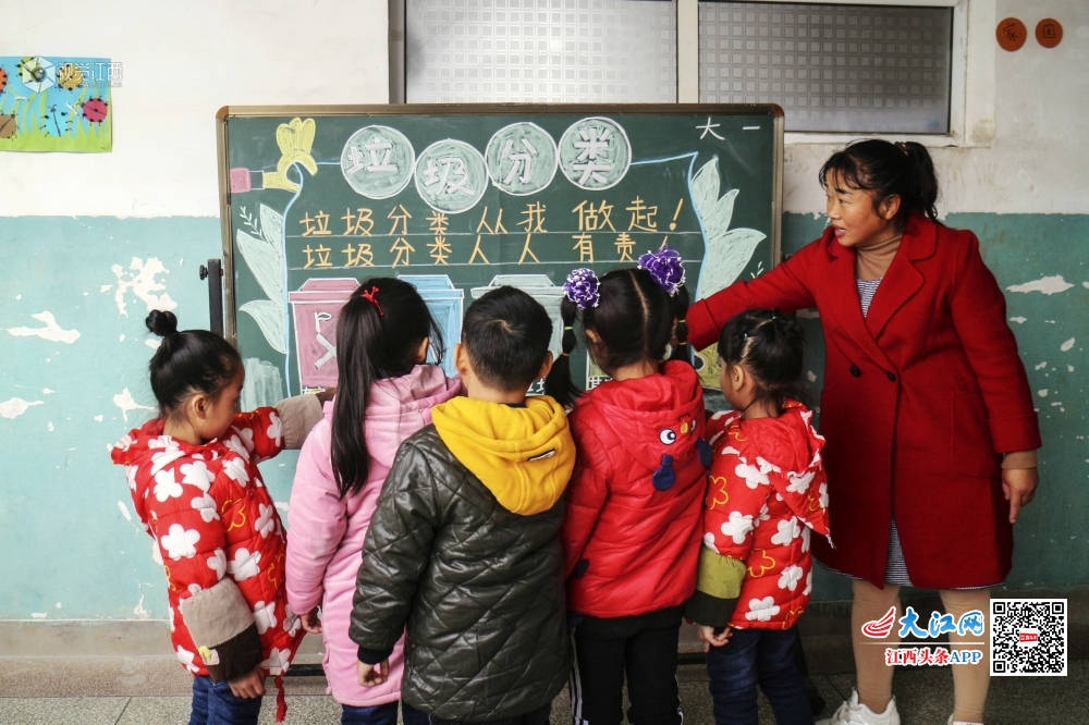 为倡导绿色生态、健康环保的生活方式,江西省分宜县各级各类学校陆续开展生活垃圾分类宣传。图为2019年11月27日,江西省分宜县洋江中心学校及中心幼儿园开展垃圾分类宣传活动。