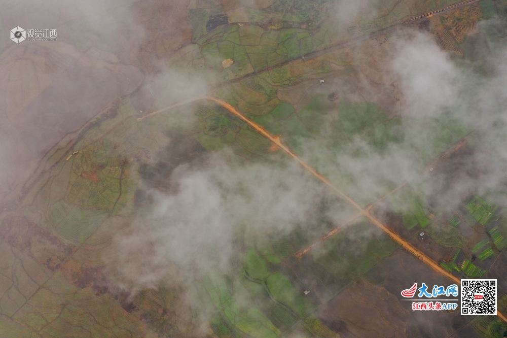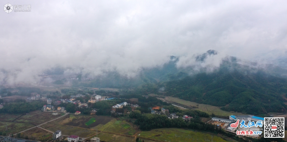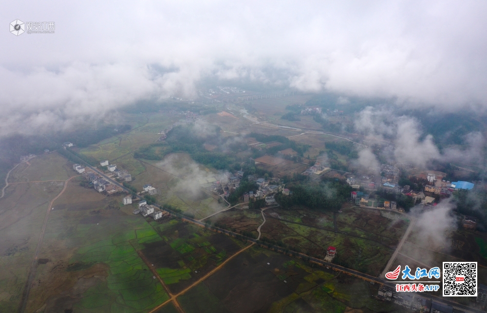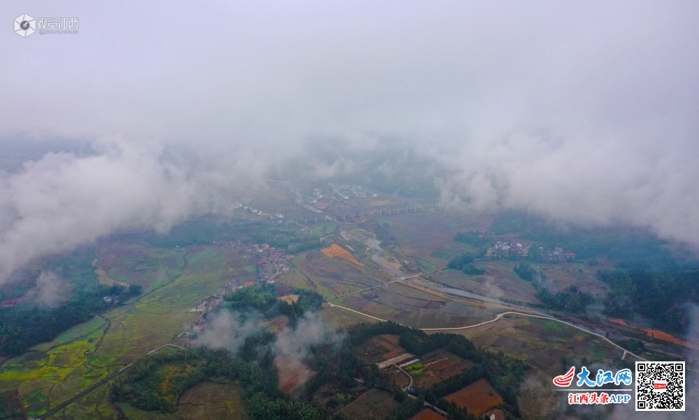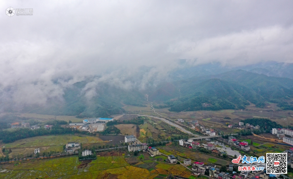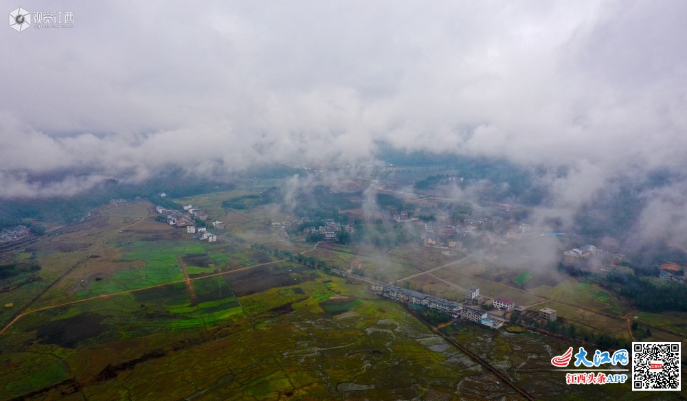 2019年11月28日,航拍江西省上饶市铅山县紫溪乡,升腾的云雾和连绵的群山形成一幅美丽的画卷。当天铅山县雨水暂歇不少乡村云雾缭绕如梦如幻宛如仙境。
