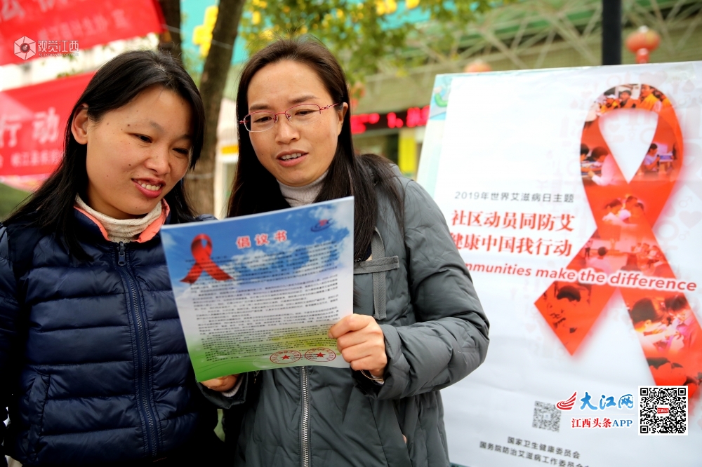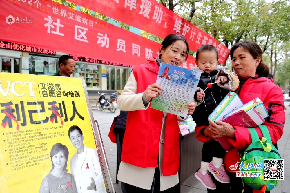 11月29日,峡江县卫健委工作人员在向当地群众介绍艾滋病防范知识。当日,峡江县卫健委开展“社区动员同防艾、健康中国我行动”主题宣传活动,在所属的街道、商场等人流较多的地方进行防艾滋病宣传,做好大众预防艾滋病知识的普及工作,并向路人及商户发放艾滋病宣传手册和防护药具。