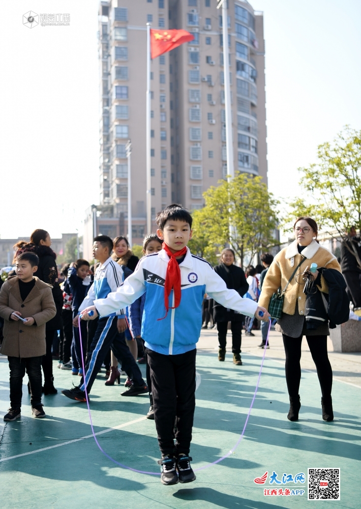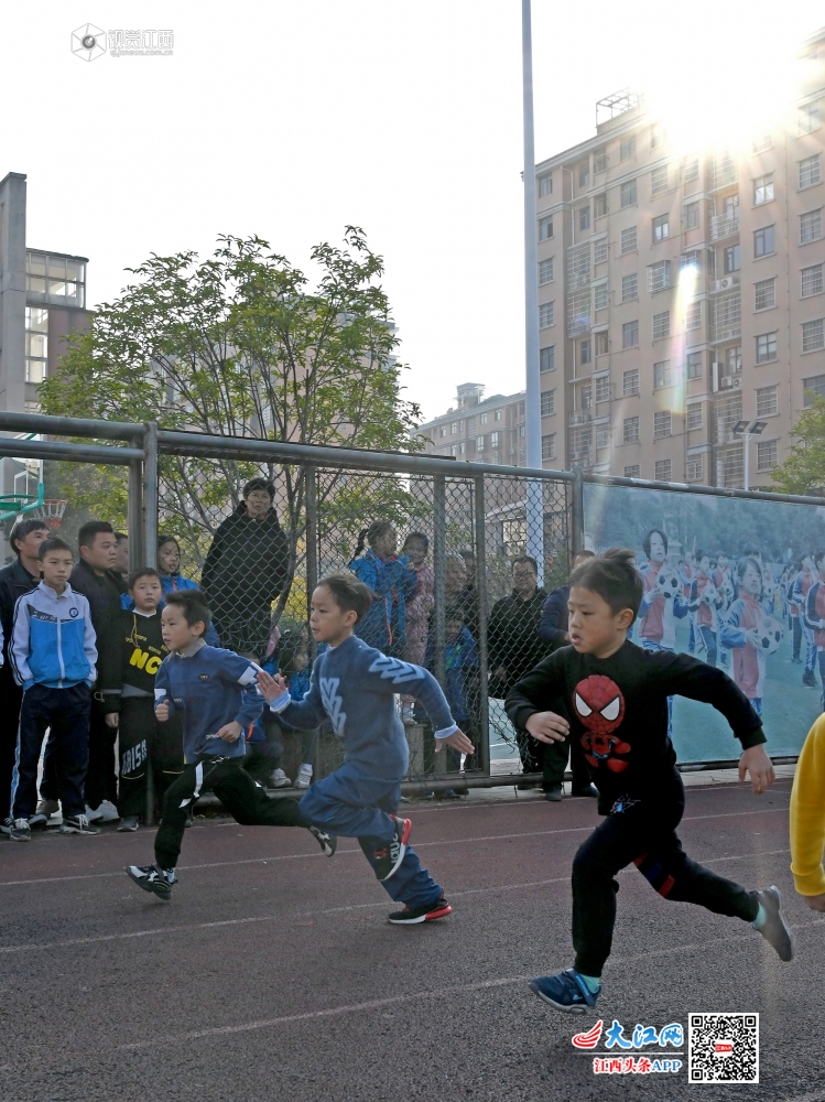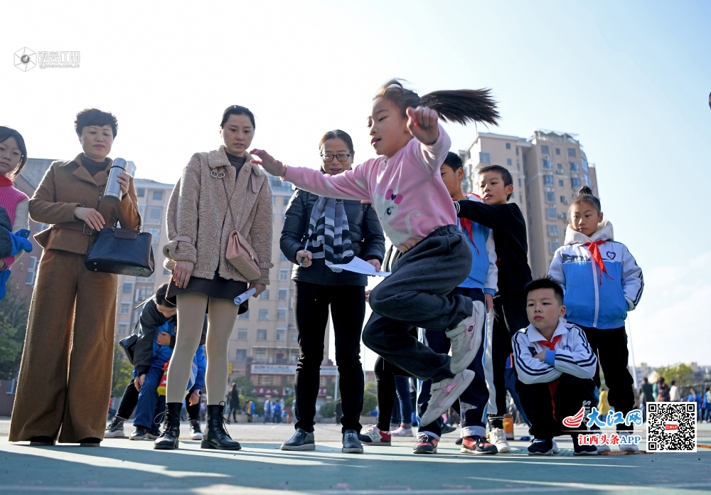 2019年11月29日,在江西省上饶市铅山县河口一小田径场上,学生们正在进行紧张的体育比赛。当天,铅山县河口一小举行2019年冬季运动会,约400名小选手根据自己的喜好参加了50m、200m、4×50m接力、垒球、跳绳、立定跳远等项目的角逐。