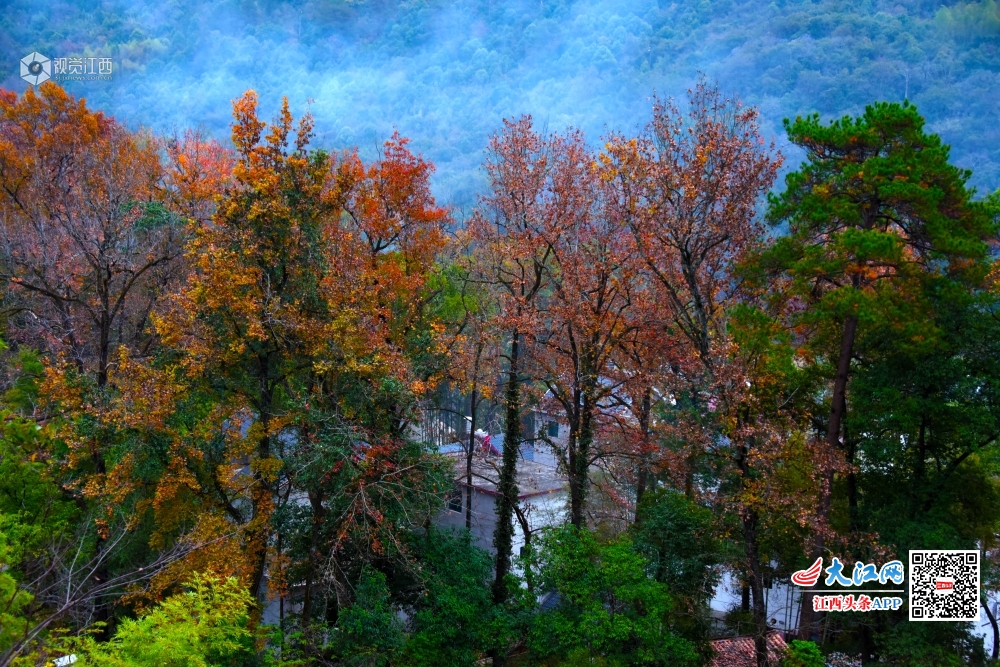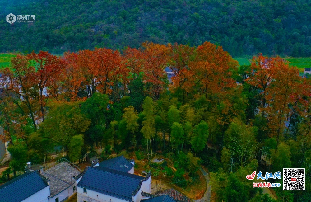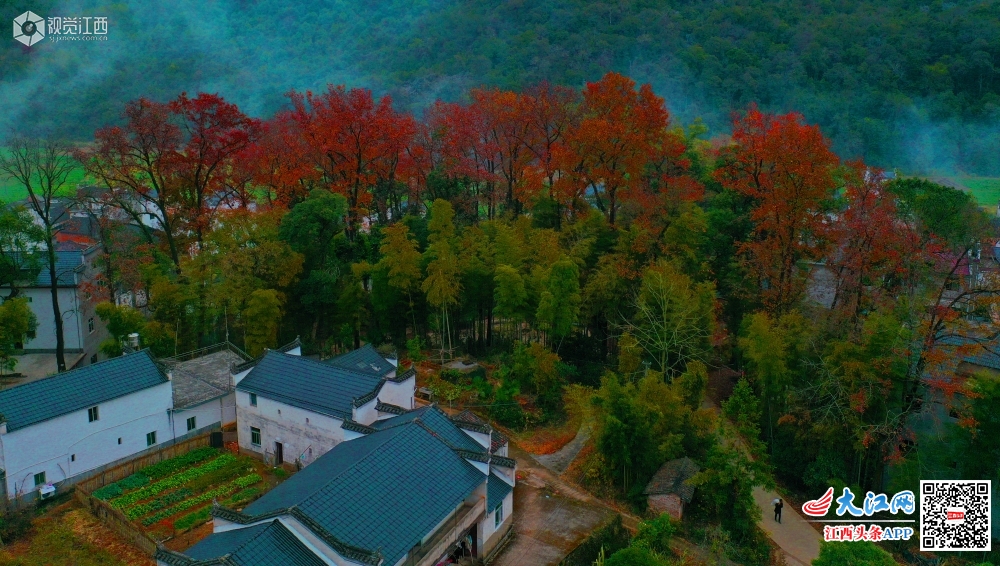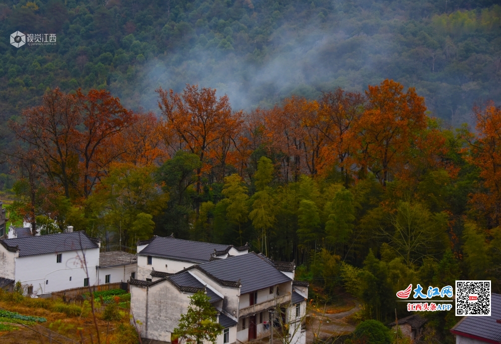 江西婺源:对冲红枫正浓