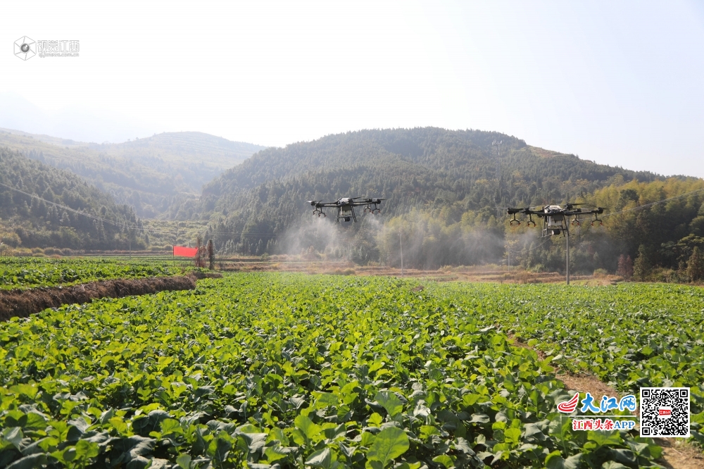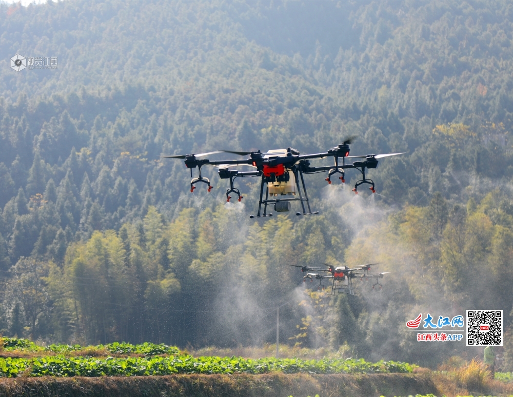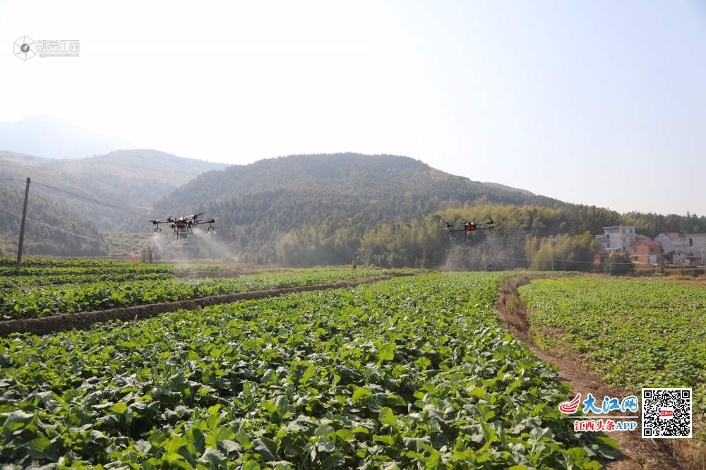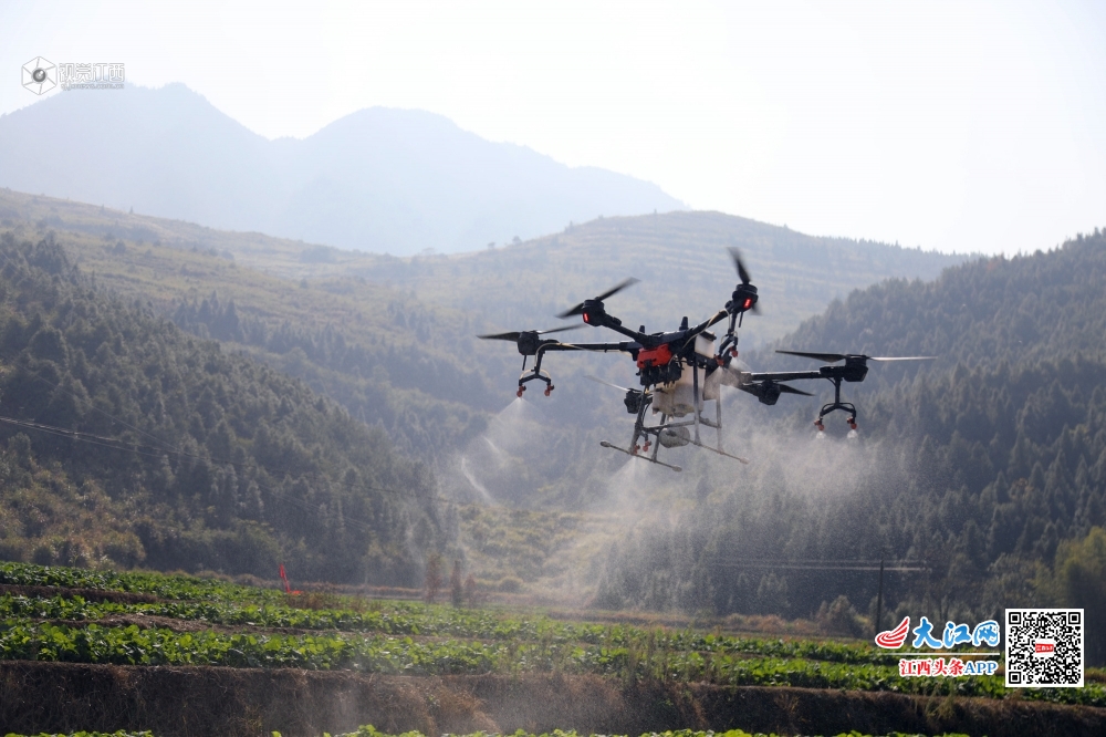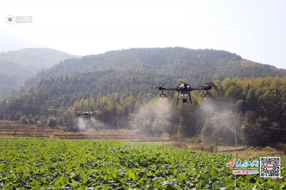 12月6日,莲花县路口镇湖塘村田垄,无人机正在油菜田上空喷洒农药。近年来该县紧紧围绕农业供给侧结构性改革,通过政策引导小农户广泛接受农业生产托管、机械化烘干等社会化服务,着力提高农业综合效益和竞争力,促进农业绿色发展和资源可持续利用。目前该县有小农户3.5万亩的耕地接受了农业生产托管。