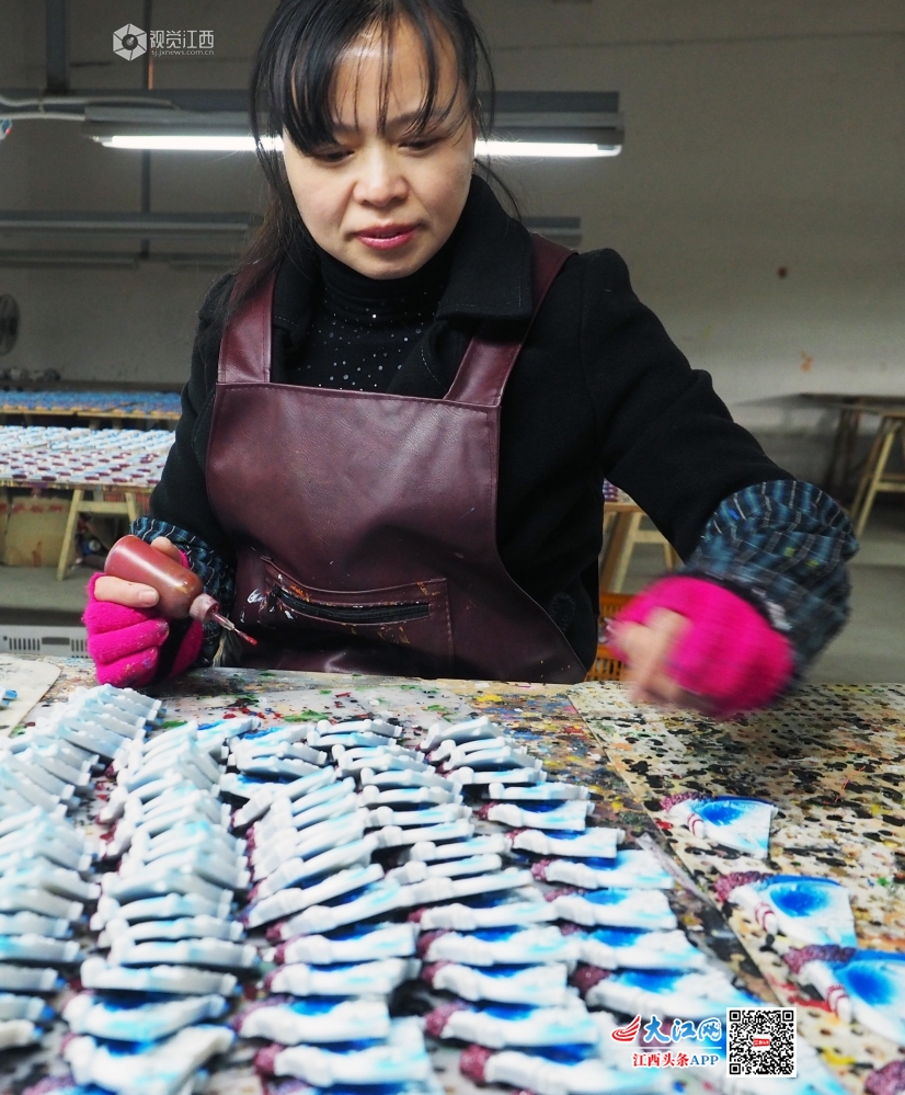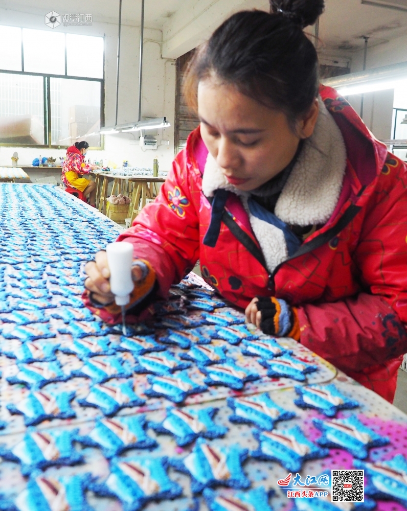 2019年12月9日,江西省南丰县琴城镇艾源村的贫困农户正在当地工业园区“扶贫车间”生产出口欧美的工艺产品,总工会牵线搭桥,使她们在家门口就业。近年来,为解决当地贫困户脱贫增收问题,南丰县总工会立足县情实际,出台优惠政策,在工业园区建立扶贫车间,通过就业牵线搭桥,使一大批无法外出务工的贫困劳动力实现就近就业,达到了一人就业、全家脱贫的目的。