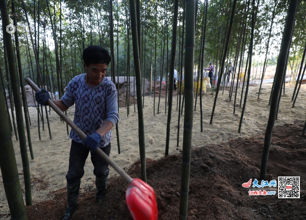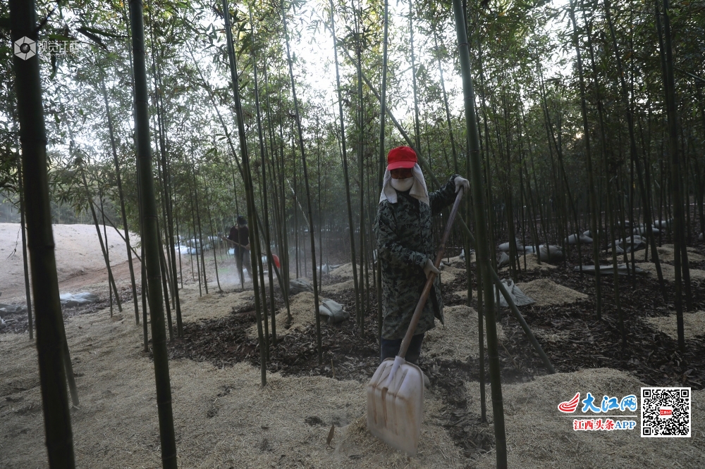 12月11日,江西莲花县良坊镇下布村千亩雷竹种植基地一片热火朝天的忙碌景象,村民正利用晴好天气抓紧给雷竹铺设保温用的稻壳,以提高雷竹笋的品质和产量。种植雷竹兼具生态、经济双重优势,一片片的雷竹亭亭玉立,扮靓了原本荒芜的田地,也照亮了贫困村的致富梦。