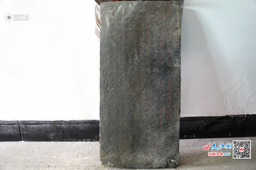 近日,分宜县在杨桥镇湖邱村维修唐代石拱桥状元桥时发现一块清代石碑,该县博物馆知悉后,立即组织人员赶赴现场勘查处理,并将古碑运到县博物馆进行保护。石碑保存完整,长70厘米,宽34厘米,厚5厘米,碑文楷书阴刻清晰可见,文字记载了唐代状元卢肇病逝返乡路过此桥而得名,后来清代监生严曰俊家人捐款重修此石桥其事,尾款立碑时间为清代道光二十六年丙午十月二十日,即1846年。