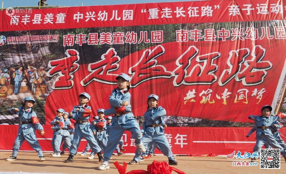 2019年12月15日,一场由江西省南丰县中兴幼儿园、美童幼儿园组织的“不忘初心、牢记使命”爱国主义主题教育亲子活动,在南丰县橘都小学举行。1250余名家长和孩子们身着红军亲子服装,参与到模拟的穿越封锁线、送军粮、抢夺泸定桥、强渡大渡河等一系列“重走长征路”军事活动的游戏中。亲子游戏寓教于乐,让孩子们在游戏中感受到运动的快乐,接受红色传统教育,感知幸福生活来之不易,进一步激发了孩子们与家长们的爱国主义情怀。