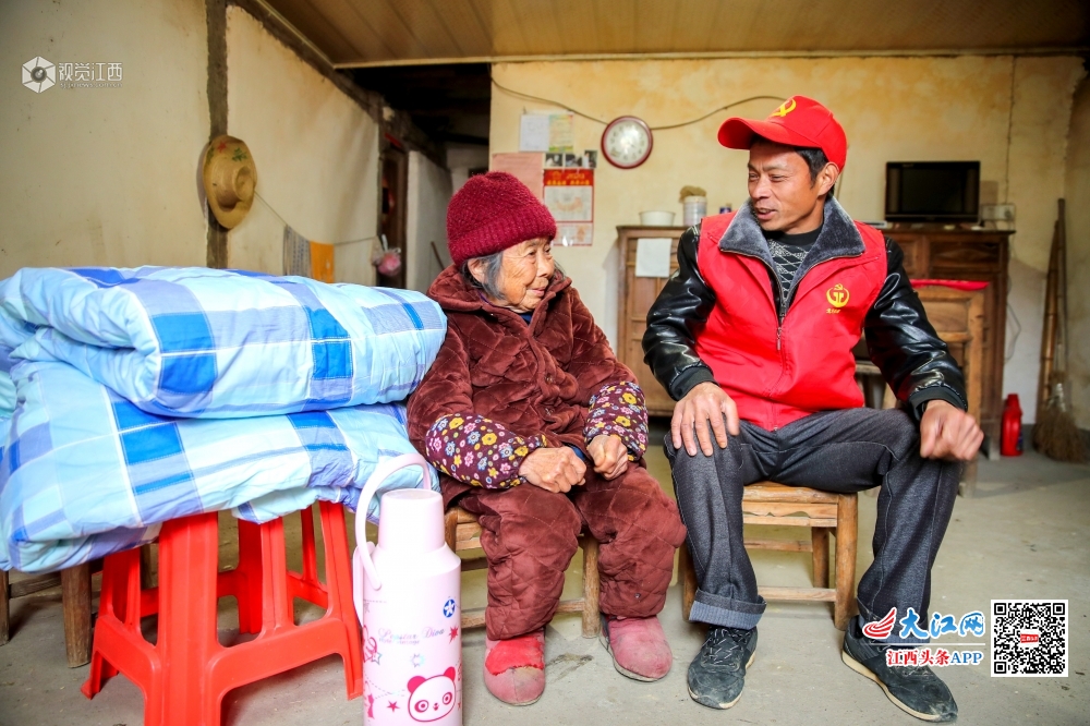 12月25日,峡江县戈坪乡组织党员志愿者深入困难群众家中,为他们清扫庭院、维修用电线路和取暖器,并送上棉被、暖水瓶等过冬物资,让他们感受到冬天里的温暖。