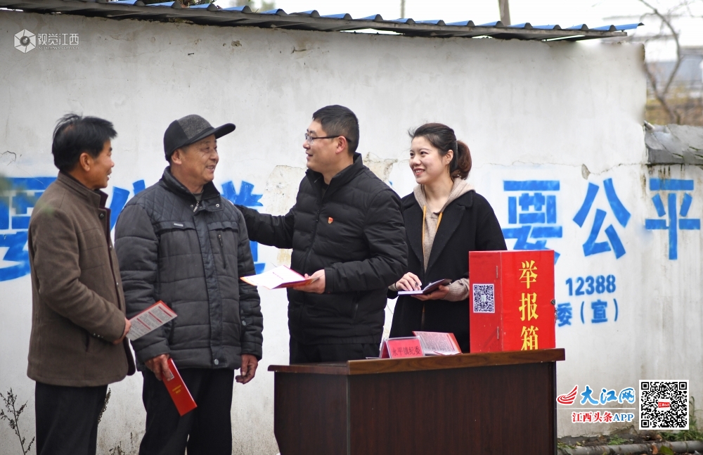 2019年12月26日,在江西省上饶市铅山县永平镇下坂村,该镇纪检监察干部接访。