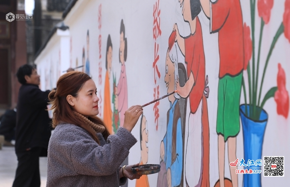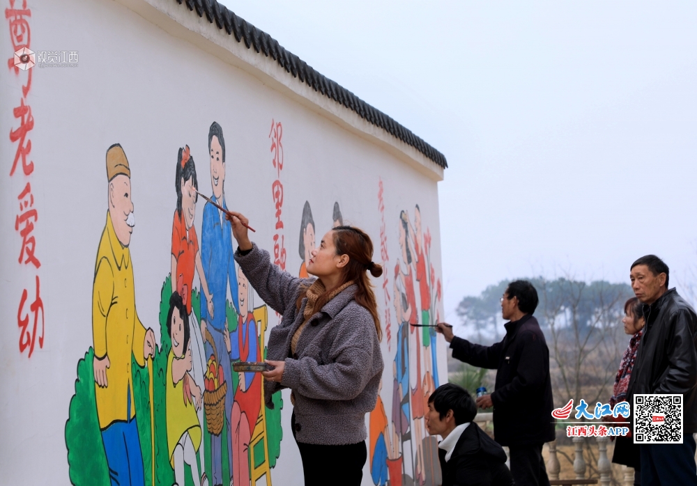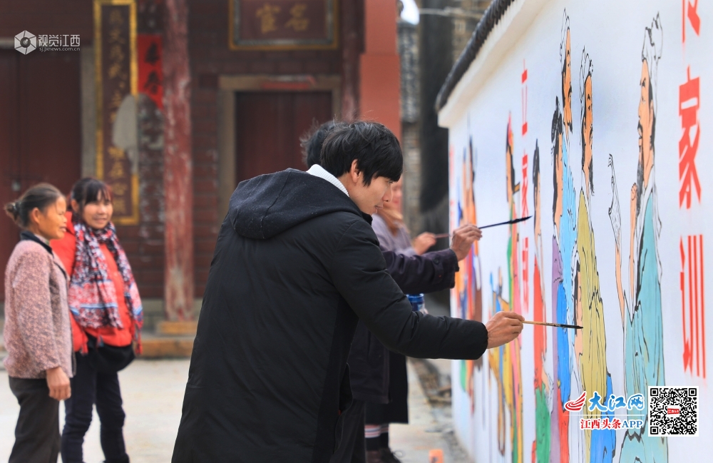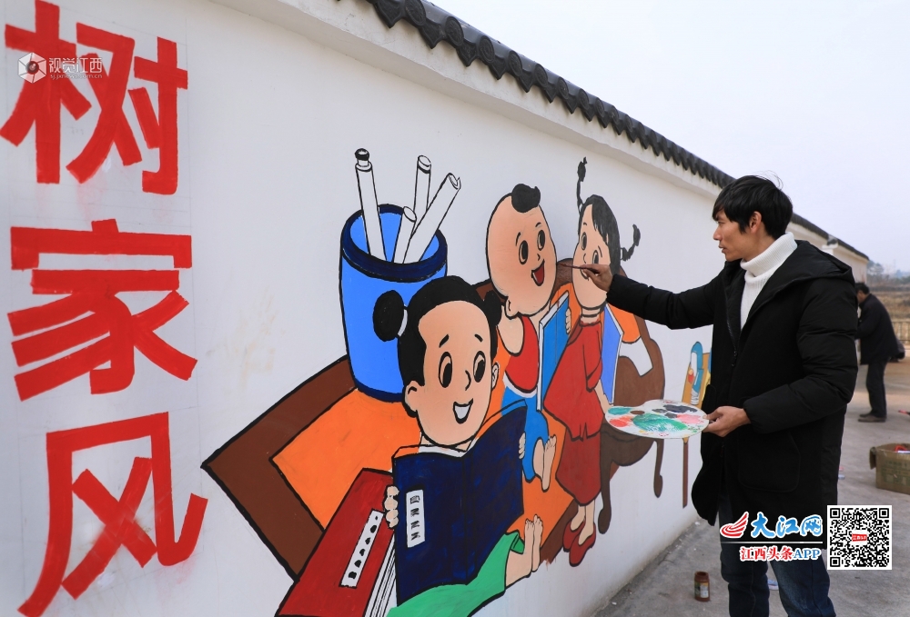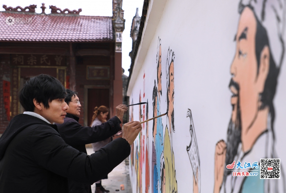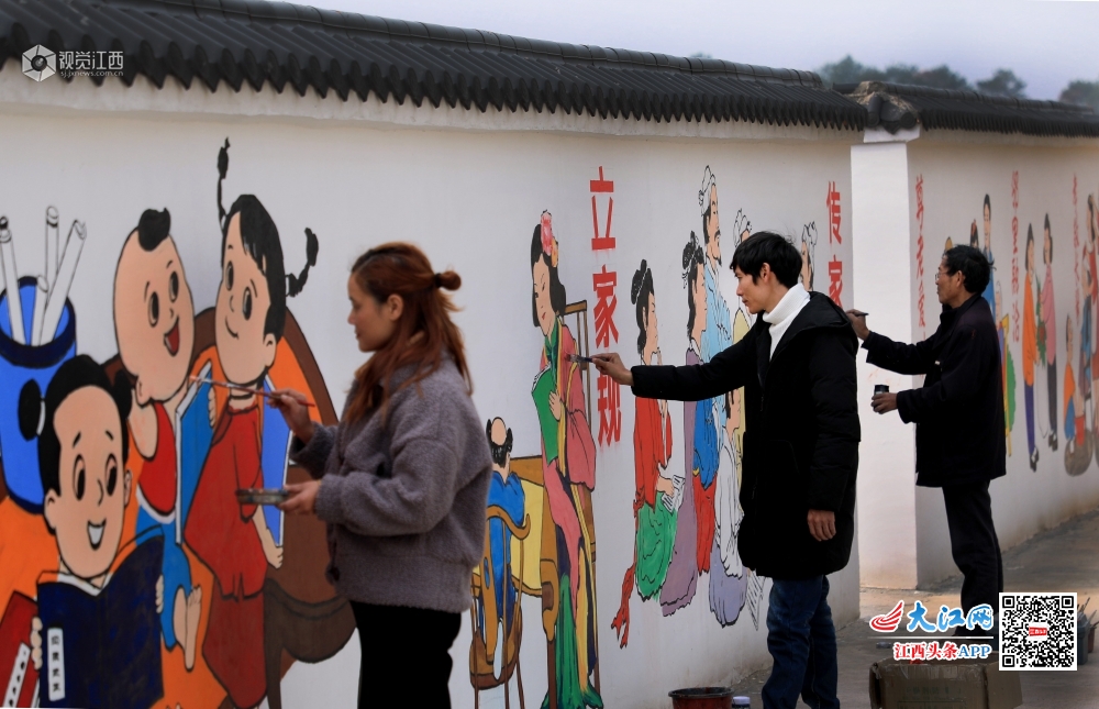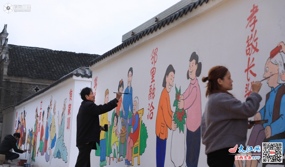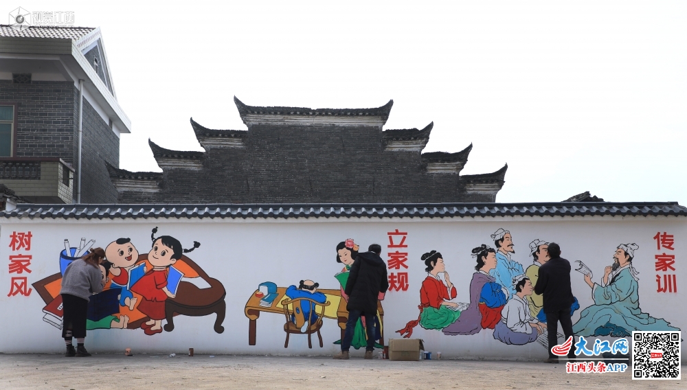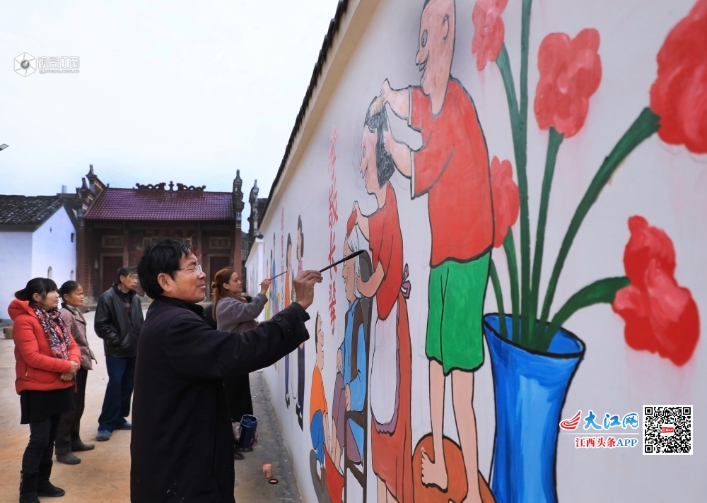 在美丽乡村建设中,江西省吉安市泰和县把农村墙壁作为弘扬乡风文明的重要载体,在农村闲置墙体上绘制社会主义核心价值观、文明礼仪、中华孝道、廉政建设等内容墙绘,精心打造图文并茂、群众喜闻乐见的农村文化墙,实现“一村一特色,一墙一风景”。