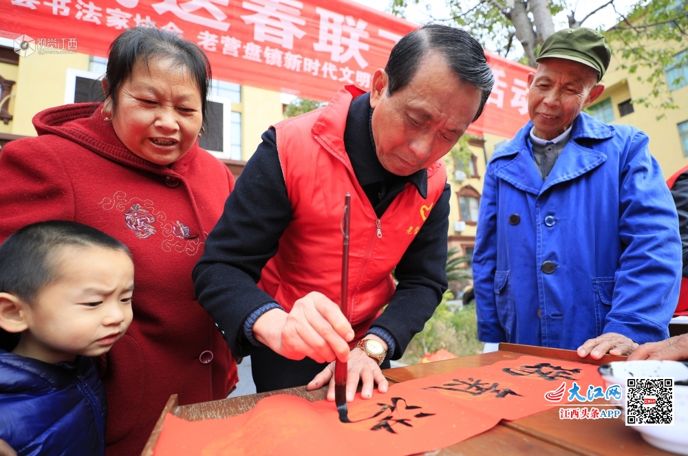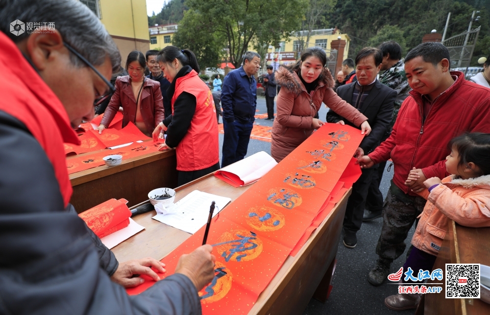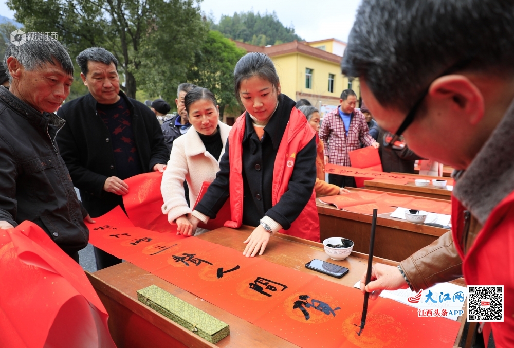 2020年1月8日,江西省吉安市泰和县文化志愿者走进该县偏远山区——老营盘圩镇,为当地群众书写春联。