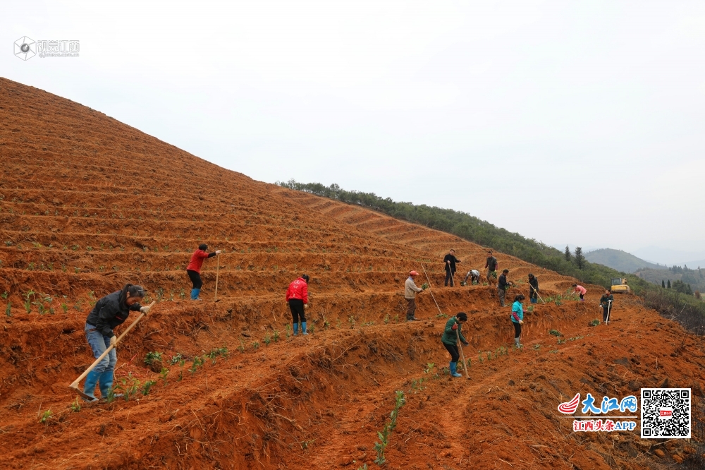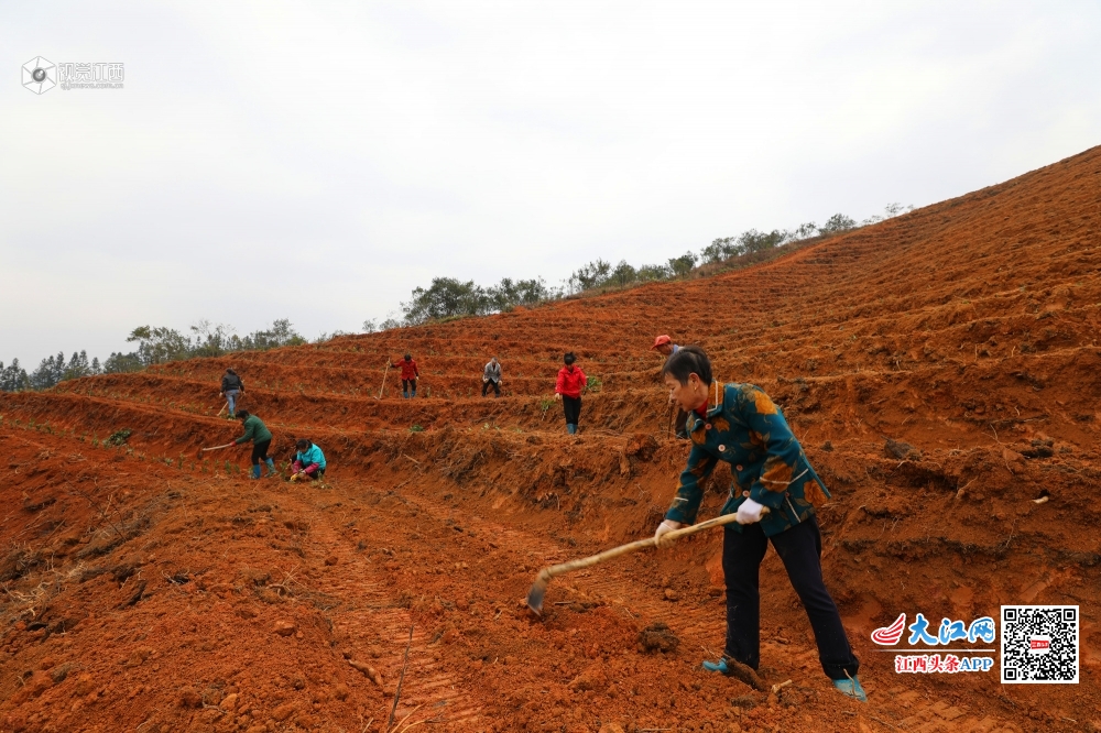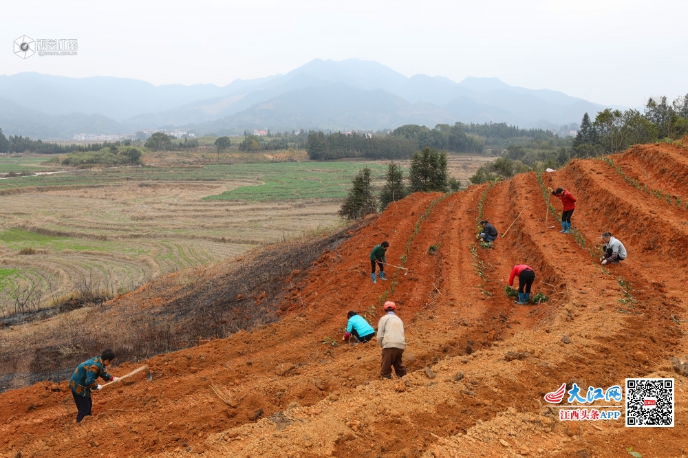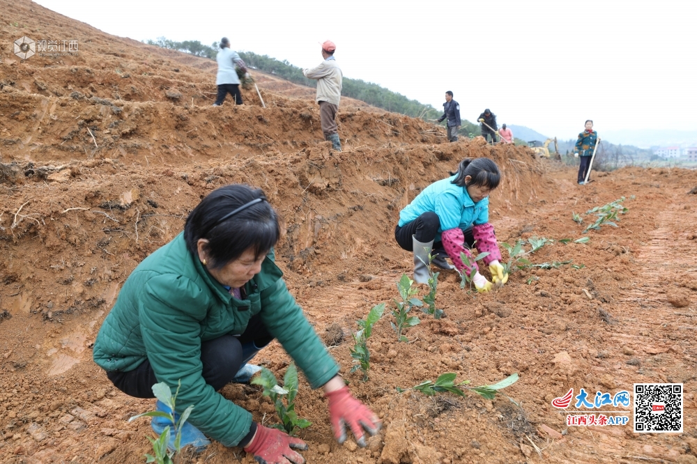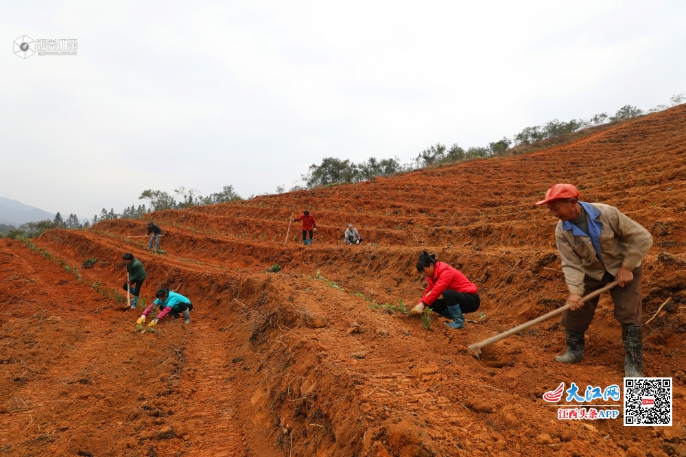 1月9日,莲花县坊楼镇东星村村民正在种植茶树。为拓宽村民脱贫致富路子,该村帮扶单位利用该村良好的生态条件通过市场运作引进业内企业建设茶园基地。村民通过在茶园劳动获得报酬,待茶园取得收益后还有分成。