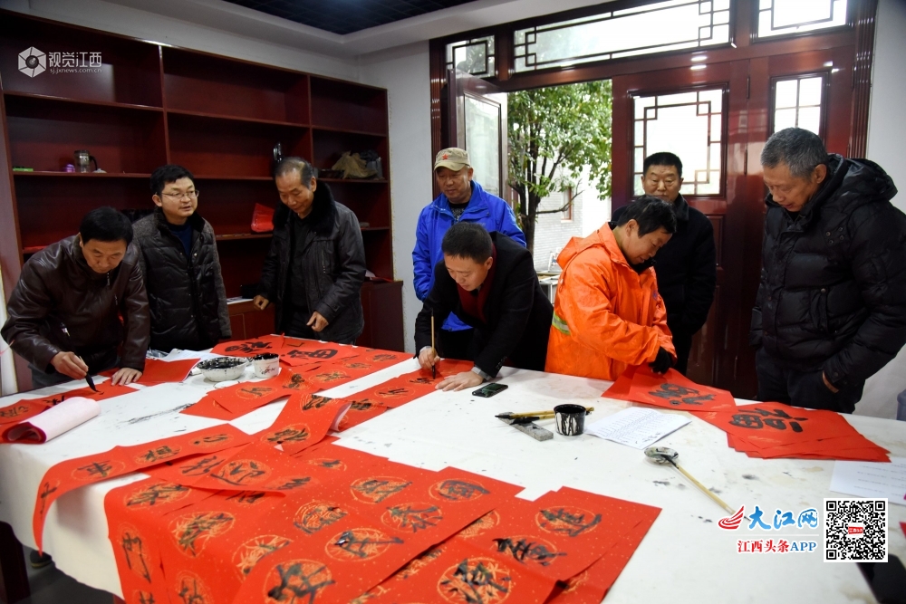 为迎接新春佳节的到来,1月11日,江西省南丰县桔文化旅游产业聚集区管委会、南丰县书法家协会共同举办“送春联送福字迎新年”活动,书法家们挥毫泼墨,为游客和过往群众书写春联,泛着浓浓墨香,传递暖暖情意,寄语新年美好祝福。