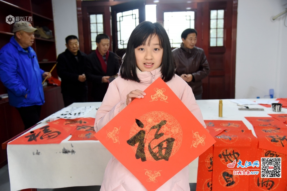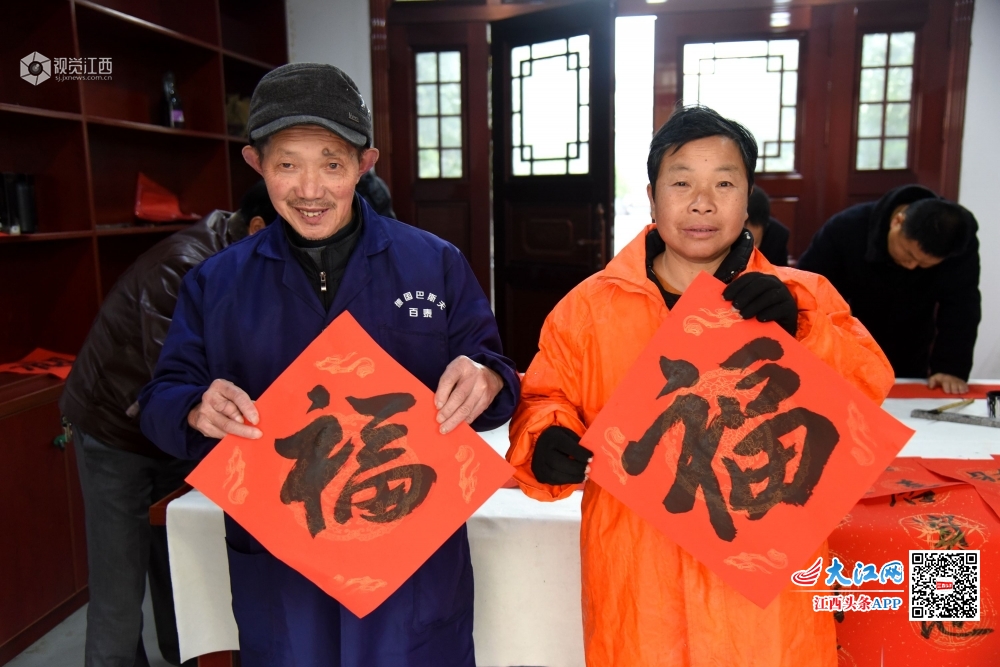 2020年1月11日,江西省南丰县书法家协会的书法家和书法爱好者为游客和过往群众现场书写春联和福字,喜迎新春佳节的到来。