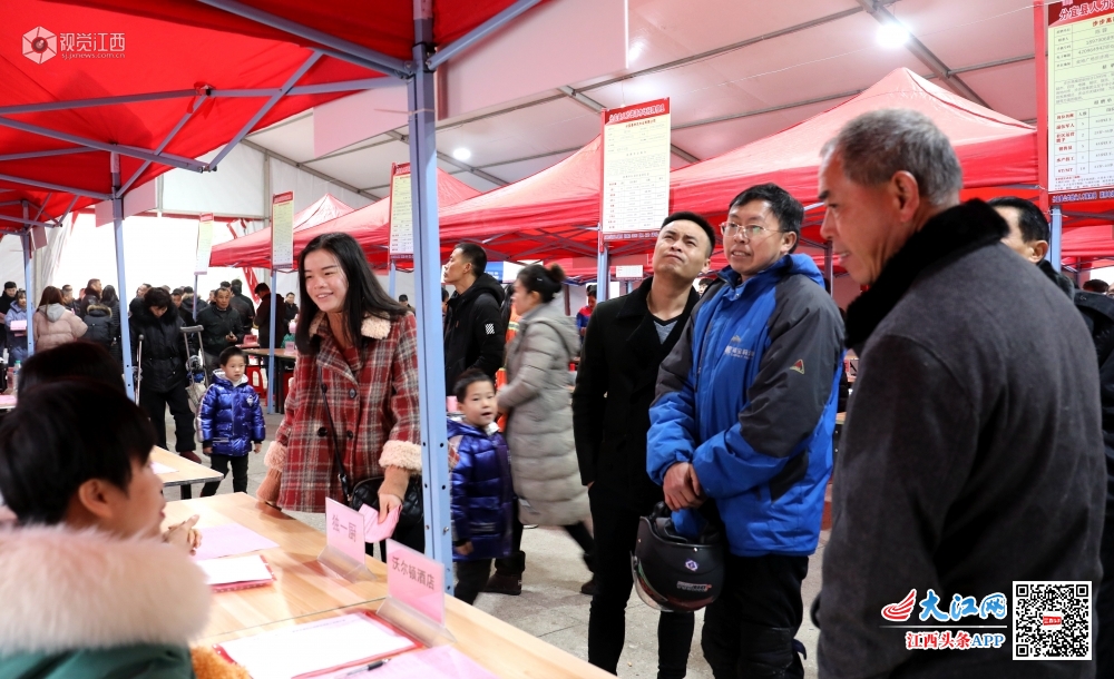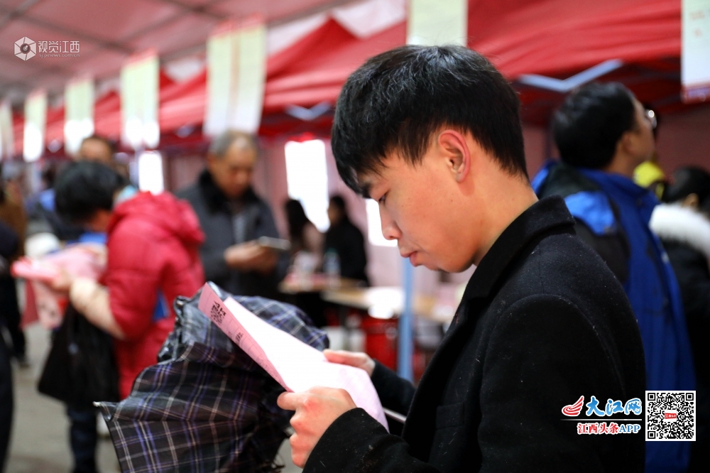 1月16日,江西省分宜县在该县市民广场举行“迎新春 助脱贫 稳就业”就业招聘会。当天尽管天气寒意袭人,招聘会仍旧吸引了许多求职者驻足围观。现场的求职者认真对照招聘岗位和要求,积极与招聘人员展开交流,主动了解用人单位的情况。