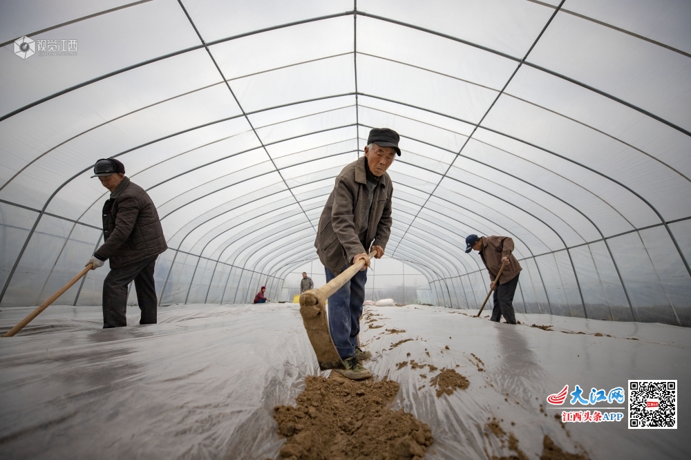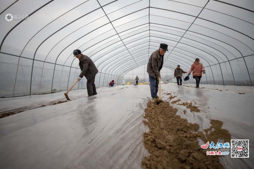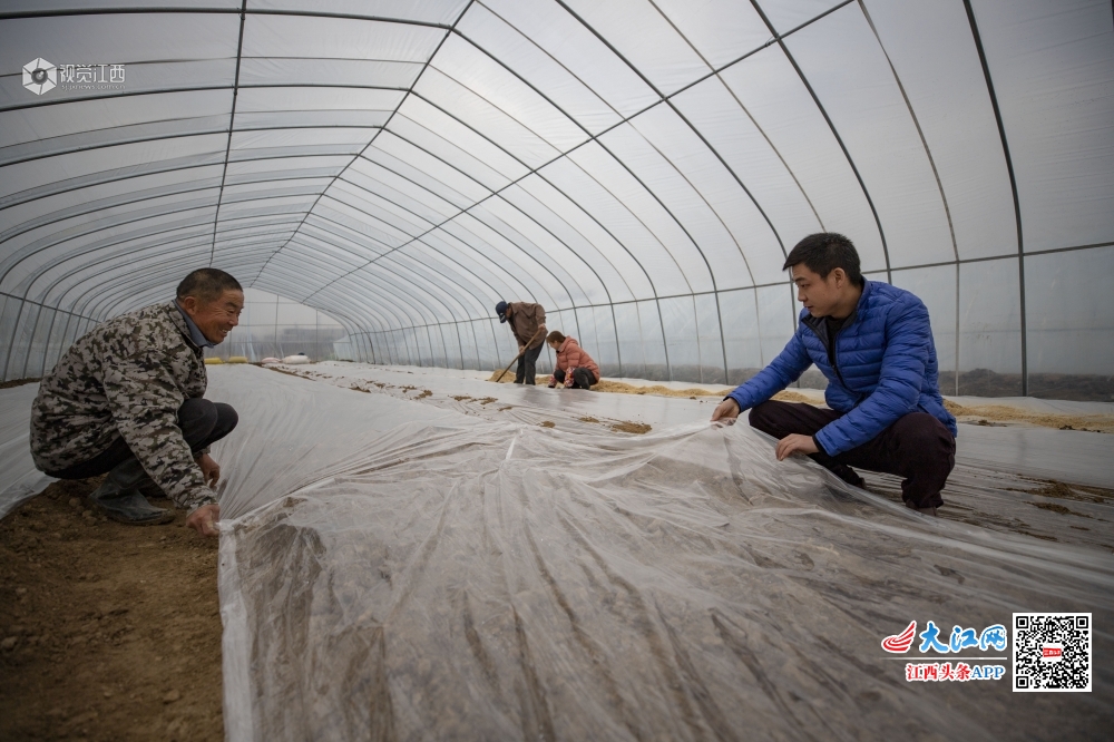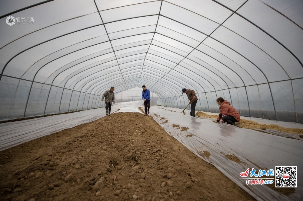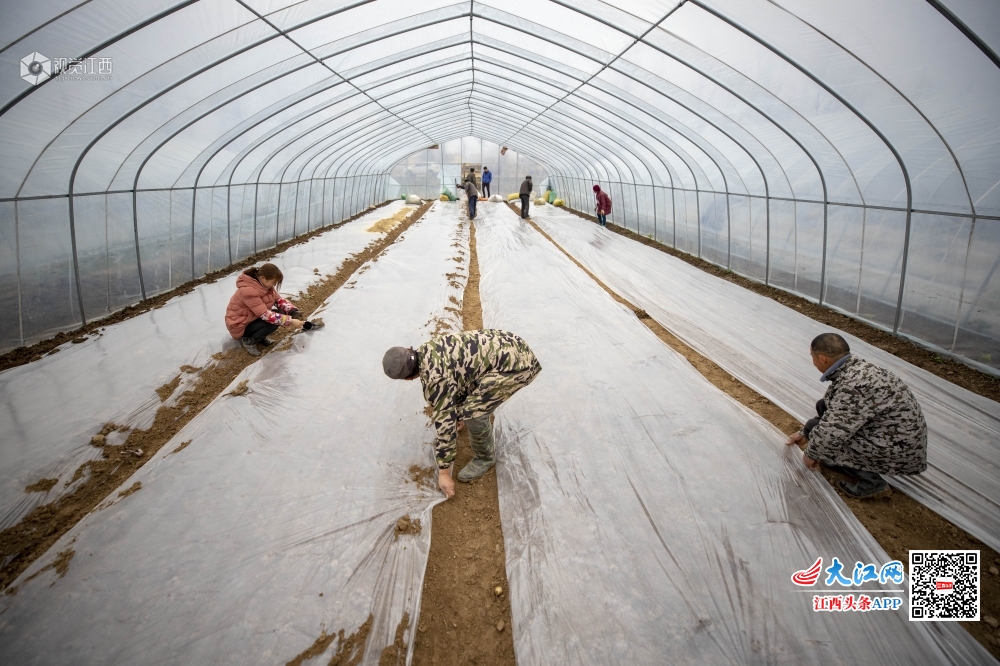 人勤春来早,2020年1月17日,江西庐山市绿游生态农业开发有限公司种植基地,农民正在大棚里忙着进行良种小甘薯育种。