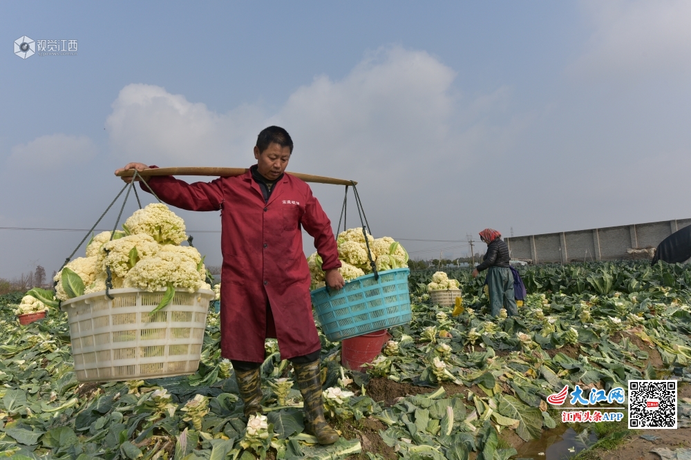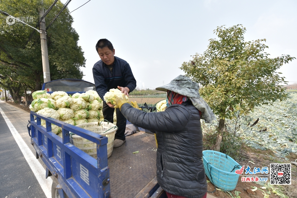 1月19日一早,东湖区扬子洲镇熊万村万长保夫妻俩早饭都没顾得上吃,趁着年前晴好的天气在自家菜地里忙着收割成熟的花菜,清理装车赶在傍晚前送往农贸市场销售。