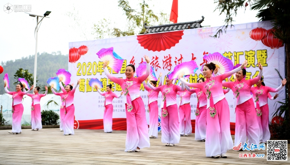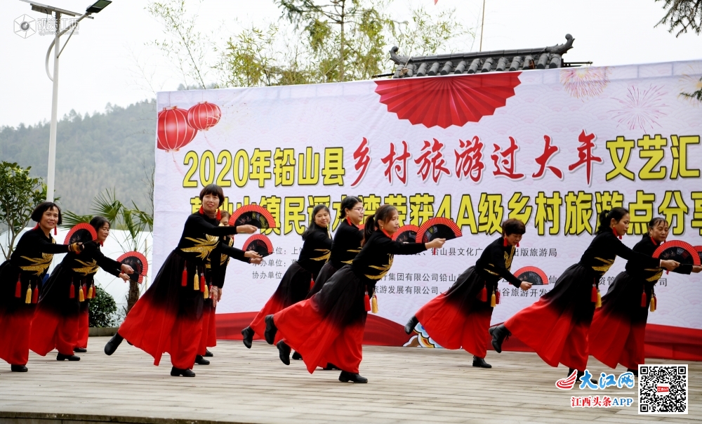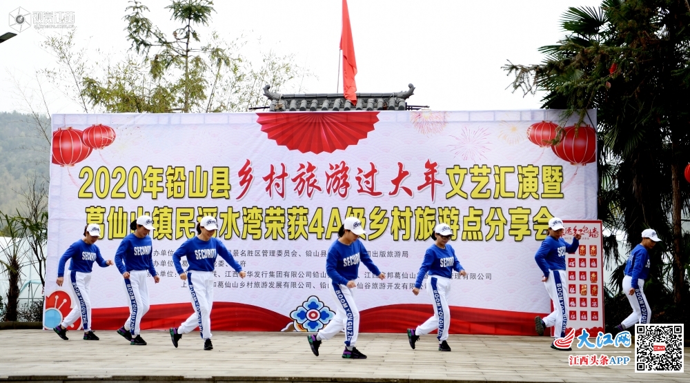 2020年1月18日,在江西省4A级乡村旅游点上饶市铅山县葛仙山镇民谣水湾,村民正在欢快表演舞蹈。