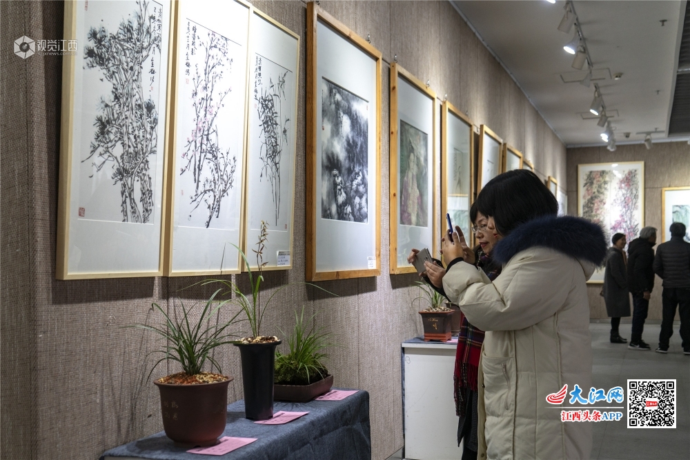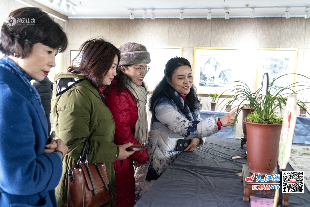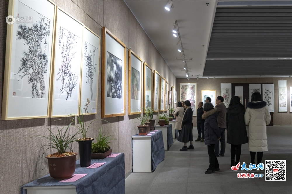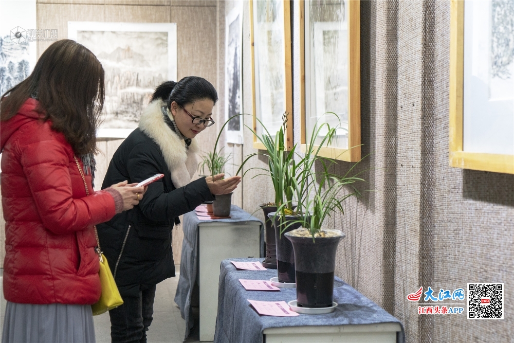 1月20日,“淡墨轻彩·斯心如兰”新余市2020迎新春中国画、兰花联展在市美术馆一楼开幕。