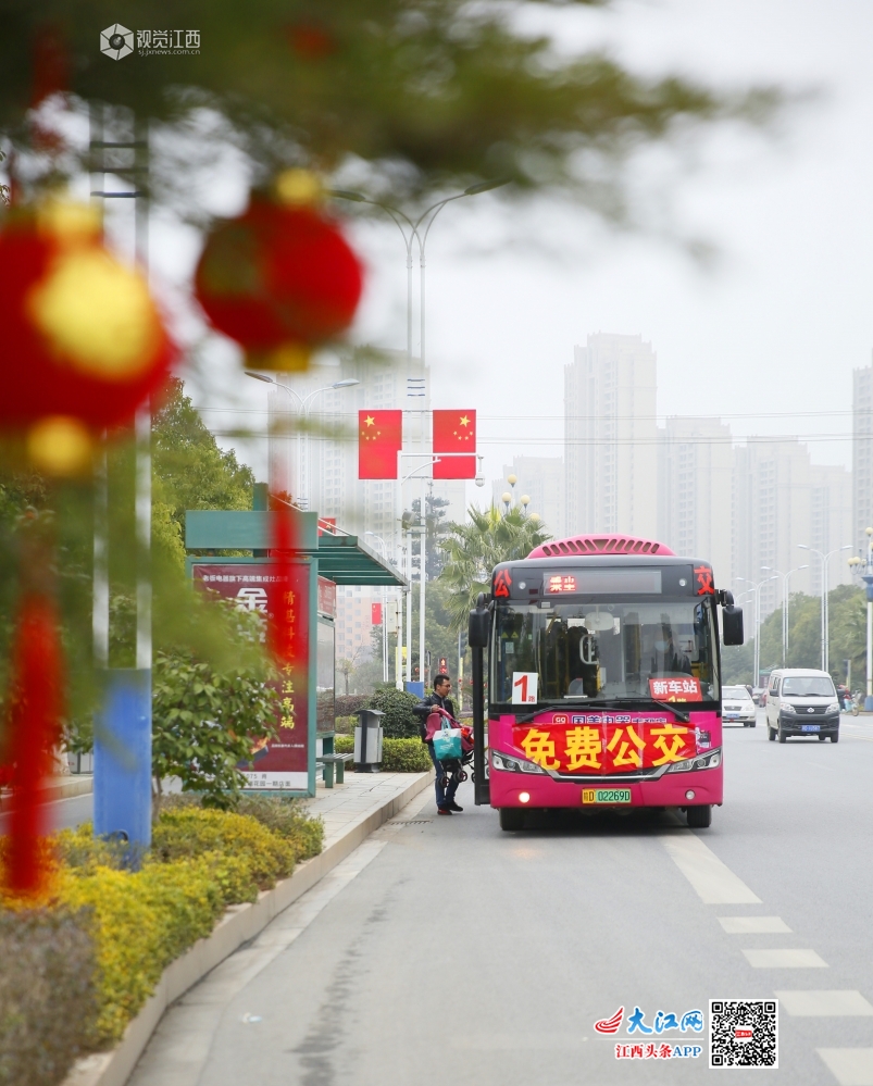 春节前后,江西省吉安市泰和县对城区所有公交车实行免费,所有班线循环发车,最短5分钟一趟,既方便了节日期间市民的出行,也大大畅通了春运“最后一公里”。