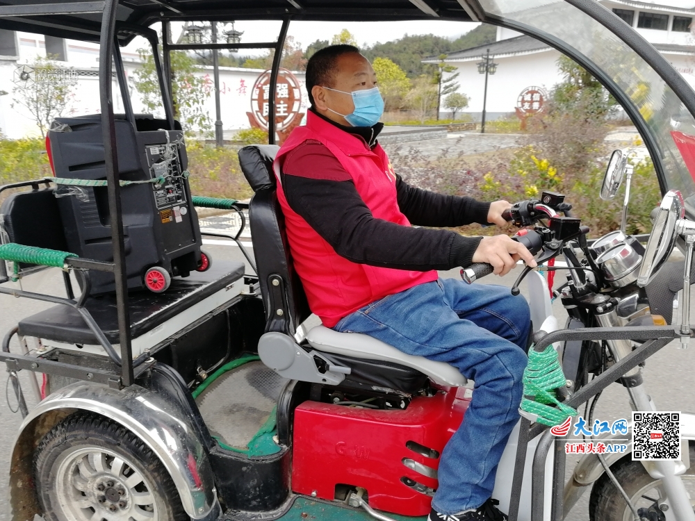 “不聚会,不聚餐,勤消毒,多开窗,出门定要戴口罩,回家定要把手洗……”。江西省全南县南迳镇古家营村都有一位熟悉的身影,每天开着电动三轮车,沿村播放疫情防控的知识。可当这位防疫宣传员下车后,人们才发现,原来他是一位残疾人,这位残疾防疫宣传员正是古家营村村民余志刚。