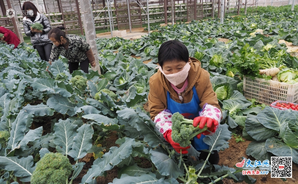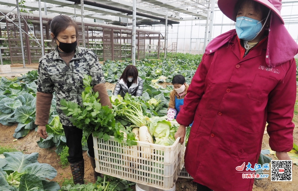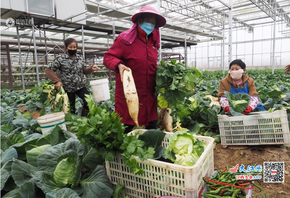 2020年2月5日,江西省南丰县太和农业示范园的员工正在采摘有机蔬菜供应市场,丰富市民的“菜篮子”。疫情防控期间,南丰县太和农业示范园充分发挥科技示范和现代农业基础设施作用,抢抓时机,增加有机蔬菜生产品种和数量,满足市民“菜篮子”供应,助力疫情防控。