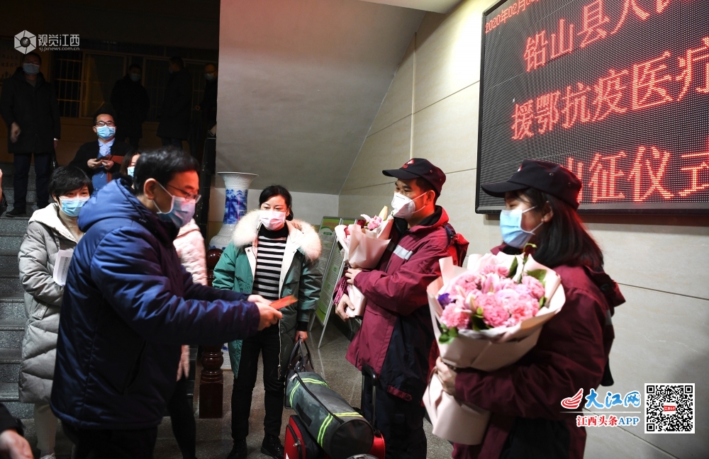 2020年2月6日,在江西省上饶市铅山县卫健委,铅山县人民医院援鄂医疗队员出征仪式在这里举行。疫情发生以来,铅山县人民院密切关注以武汉为中心的全国疫情变化,及时快速落实国家、省、市、县卫健委抗击疫情总体要求。全院各科室积极响应,踊跃报名,主动请缨,敢于担当。经过多方考虑和考核,最终决定由铅山县人民医院呼吸内科主治医师王富波、ICU护师李智琴参加江西援助湖北医疗队。