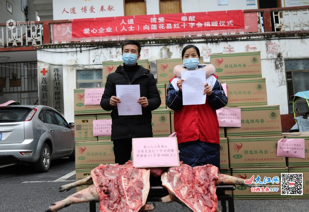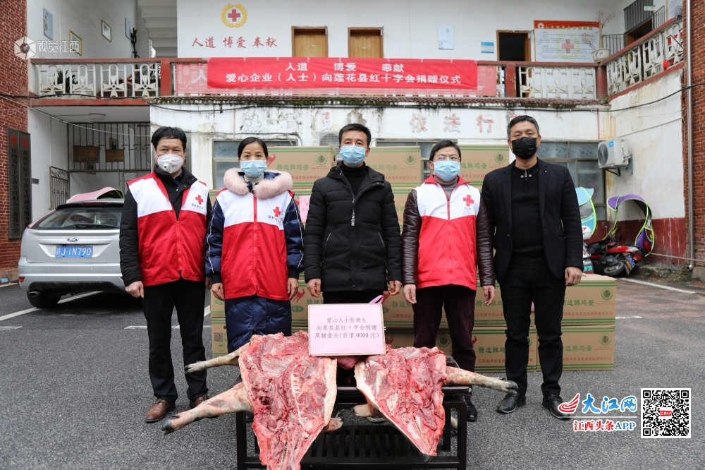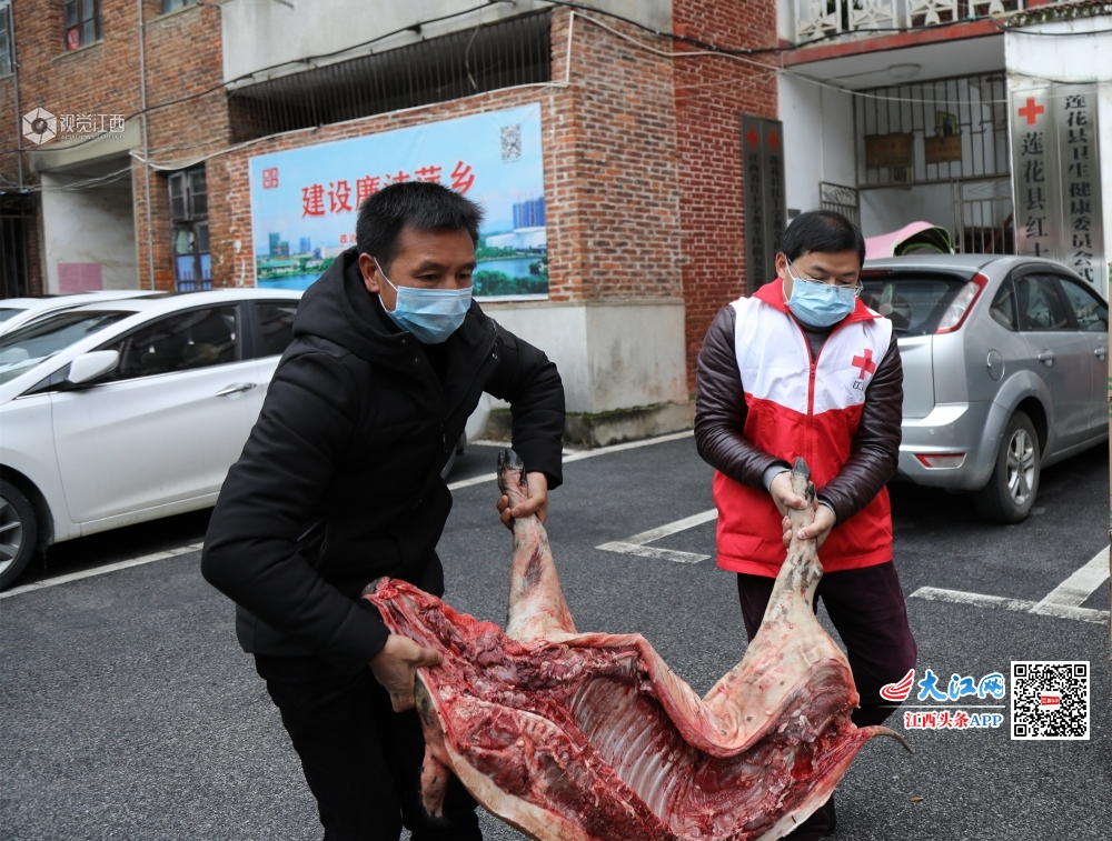 2月7日上午,江西省莲花县神泉乡永坊村村民张德生将杀好的一头黑猪送到该县红十字会,捐给奋战在抗疫一线的医护人员食用。张德生是2014年建档立卡贫困户,在当地党和政府的帮助下,通过养猪在2016年脱贫。今年他养了野猪200多头,黑猪、花猪100多头,看到医护人员为救护病人日夜战斗,毅然决定将市值6000元的一头黑猪捐献出来,并且自己宰杀好,骑着三轮车送到县红十字会,由县红十字会再分发到县人民医院和乡镇卫生院。