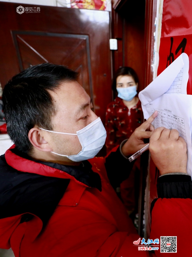 2020年2月7日,在江西省吉安市泰和县澄江镇白风社区一无物业小区,党员志愿者上门入户登记居民信息,全面排查武汉返乡人员及密切接触者。城区人口密集、流动大,给疫情防控带来不小压力,针对这一防控薄弱区域,江西省吉安市泰和县号召广大党员志愿者投身抗疫一线,他们以两三人为一组,组成一一支支小分队,下沉到各居民社区,尤其是无物业小区、城中村、集贸市场等重点场所,对居民信息进行一一登记,深排细查武汉返乡人员及密切接触者,同时宣传防疫知识,增强居民科学防控意识和能力,全力阻止疫情扩散传播,带头打好疫情防控攻坚战。