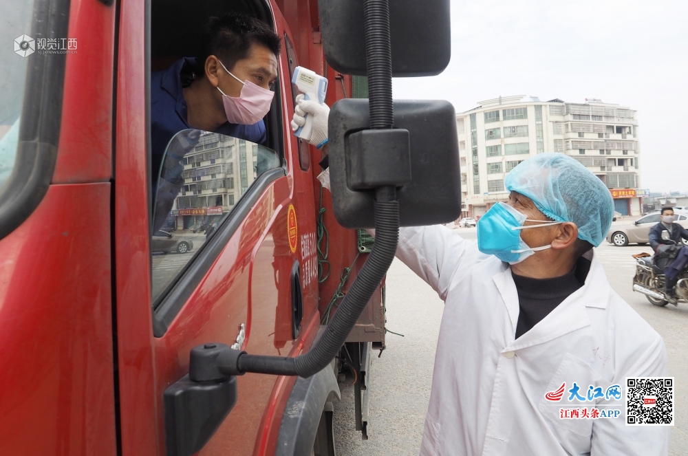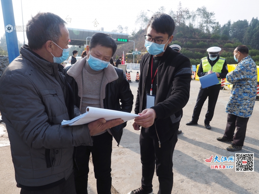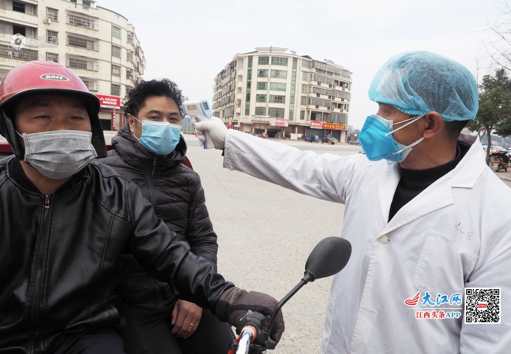 2020年2月10日,在江西省南丰县白舍镇飞龙大道疫情监测点和该镇的各个村口检查点,值守人员正在对过往的车辆和行人举行体温测量、信息登记,严控出入境的车辆和人员。为了打好新冠肺炎疫情防控阻击战,南丰县白舍镇成立了疫情防控应急指挥部,在加大疫情防控宣传力度的同时,在高速公路口的入境口和通向各村的道路口设置了检查点,由党员干部、公安民警、民兵、乡村干部、医务人员和村民志愿者组成值守人员,轮流值守站岗,采取科学封闭式管理,布置防控力量。坚决杜绝“陌生人”进村,对本地出村的人和车辆进行登记,镇政府投入资金6万余元为全镇每户村民配发了一只测量体温的温度计,由各村党员志愿者每天为村民测量体温。镇纪委把纪律挺在“疫情”一线,组成3个巡查组,严格检查值守人员在岗情况,全力以赴做好疫情防控工作,坚决阻断疫情病毒传播通道。