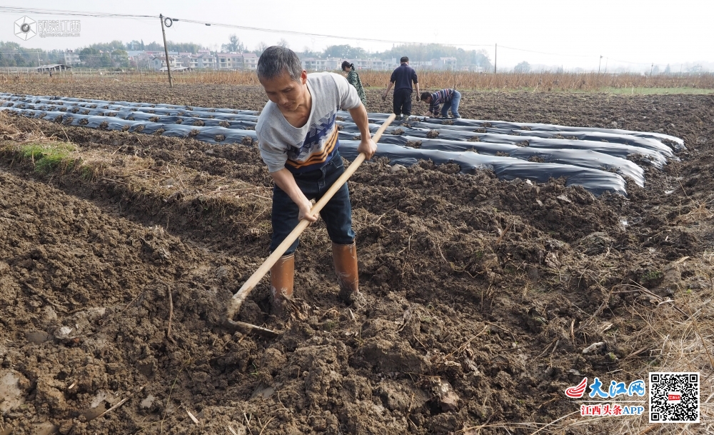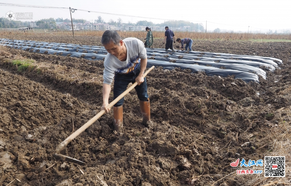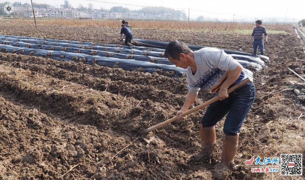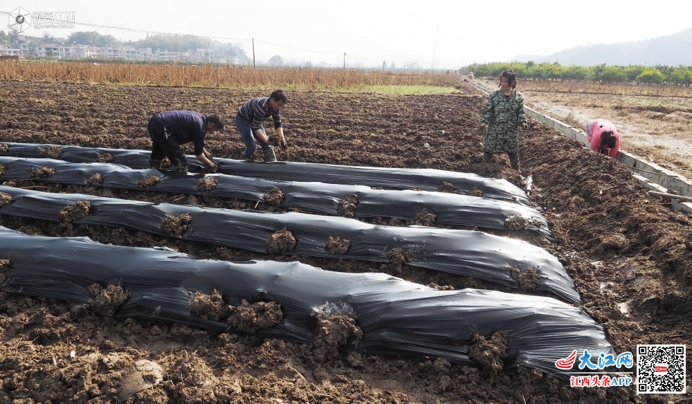 2020年2月10日,江西省南丰县白舍镇瑶陂村千亩槟榔芋种植基地,农民们正在翻地起垄,覆盖薄膜准备栽种槟榔芋。天气渐暖,当地农民在做好疫情防控的同时陆续开展春耕生产,肥沃的田野间农民忙绿身影,构置成一幅春回大地耕种忙的美丽画卷。