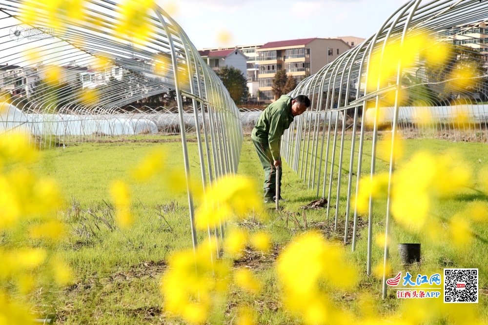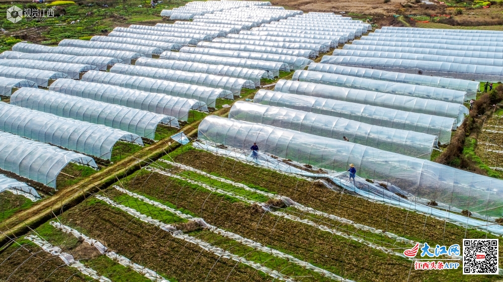 2月14日,峡江县水边镇何君村的农民在搭建蔬菜大棚。连日来,峡江县农民在做好防疫工作的同时,合理错时劳作,确保春耕不误农时。