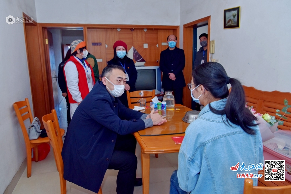 2月14日上午,在丁公路街道主要负责同志的陪同下,南昌市西湖区区委副书记陈奕蒙同志来到了金府社区,上门看望和慰问了社区里援鄂医护人员的家属。