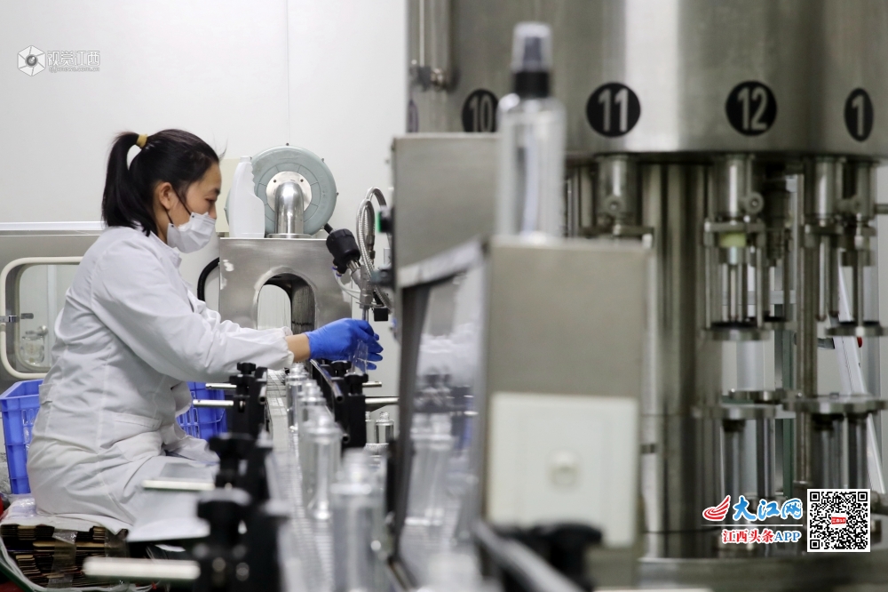 2月14日,江西省吉安市峡江县工业园区一家企业生产车间,贫困户刘水香在生产线上做工。