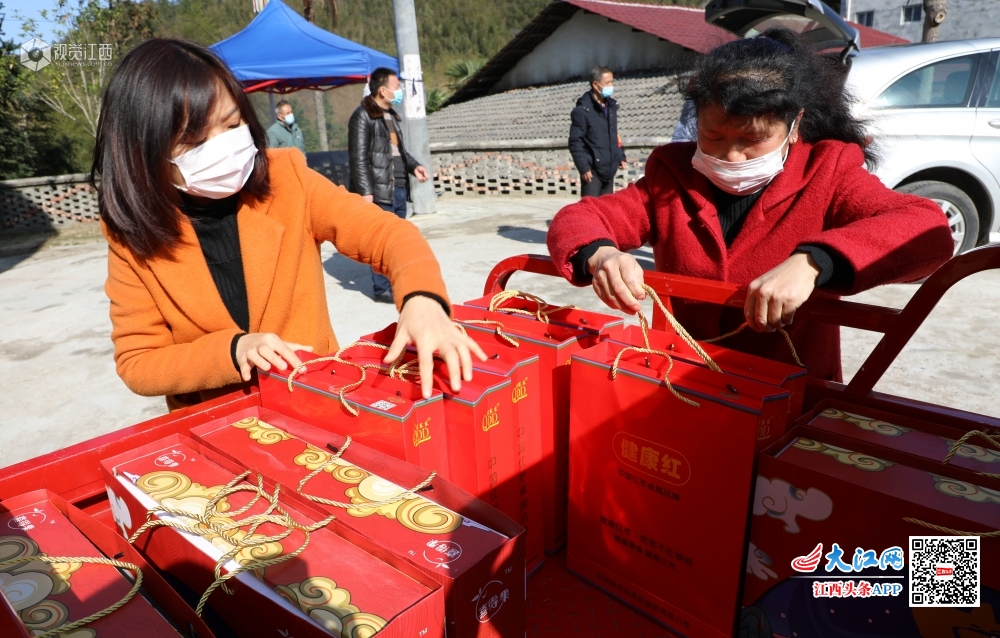 2020年2月17日,帮扶单位与爱心企业给泰和县老营盘镇的贫困户们送来了一批礼盒装新鲜水果。泰和县老营盘镇小庄村是个贫困村,疫情发生以来,村子一直处于封闭管理。