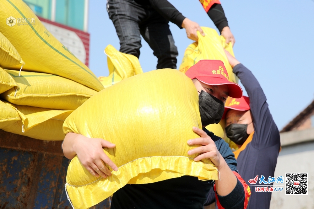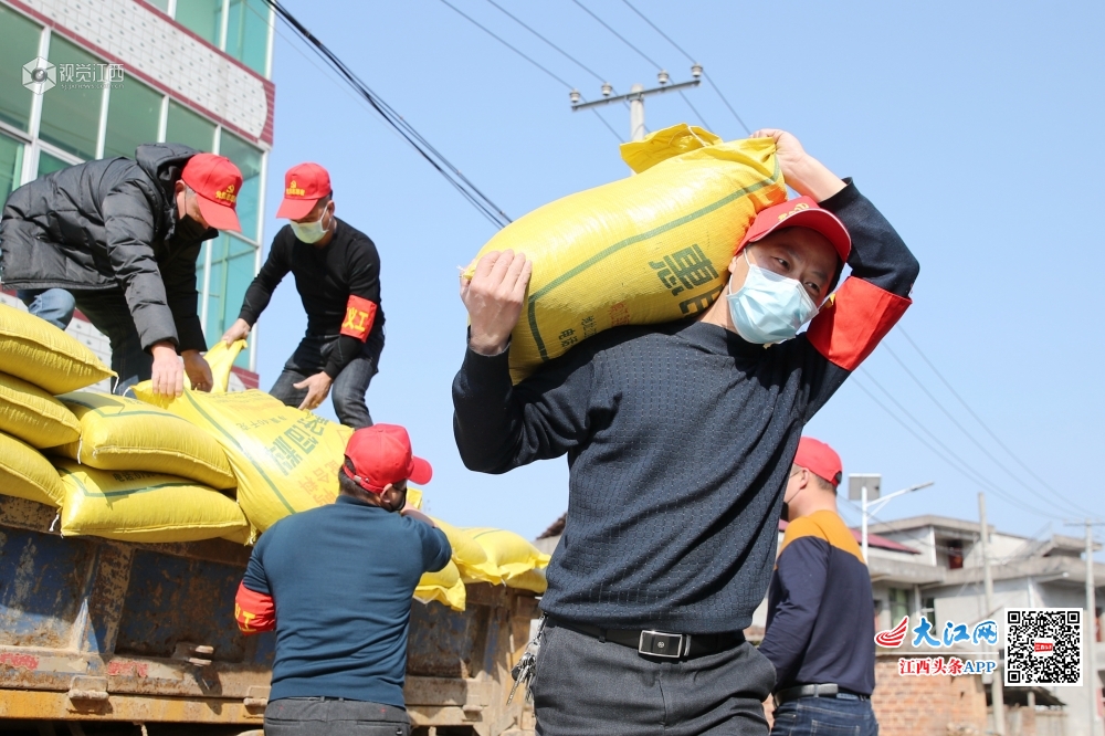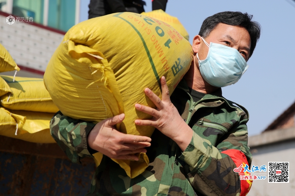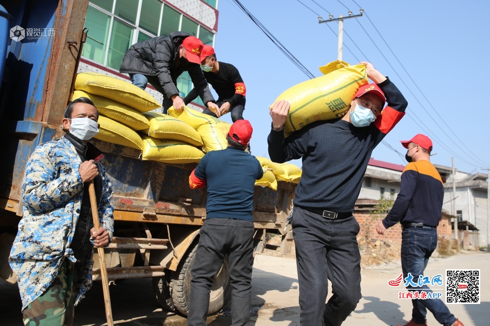 2月20日,江西省吉安市峡江县金江乡婪山村贫困户陈益根买来一车鸭饲料,因腿部患有残疾,无人搬卸。该县水利局帮扶干部了解到这一情况,立即组织党员义工前来搬卸,解了陈益根的燃眉之急。