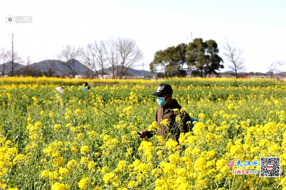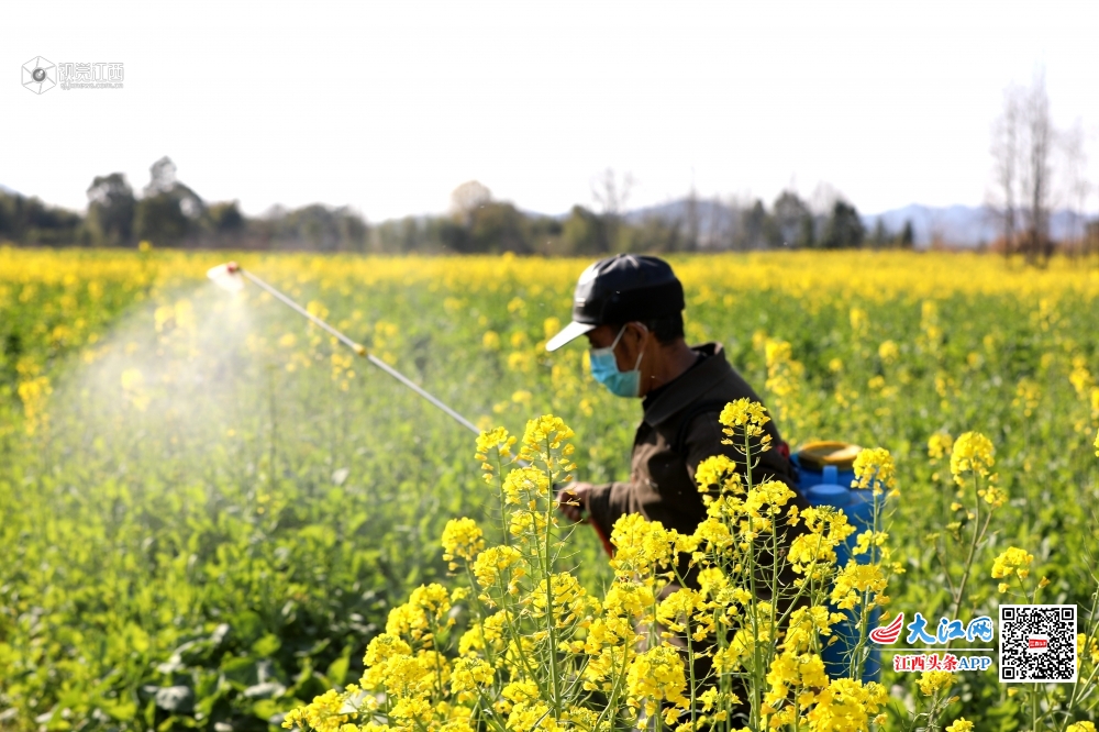 2月19日,江西省分宜县分宜镇角元村村民正在为油菜喷洒农药,防治油菜菌核病的发生,确保春季油菜丰收。眼下,正值油菜生长时节,也是防治油菜菌核病的关键时期,分宜县农民在做好疫情防控的同时,加强田间管理,适时进行科学防治,为今年油菜丰收提供有效保障。