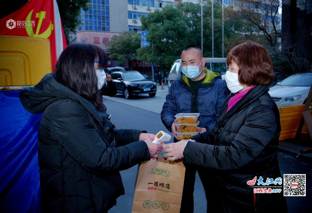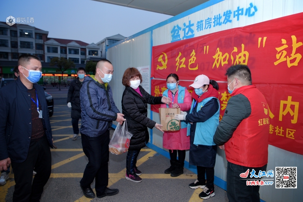 2月22日晚,南昌市丁公路街道社会组织党支部联合南昌市餐饮(烹饪)协会党支部到辖区各疫情防控点慰问值守的工作人员和志愿者,并为他们送上70份免费的爱心晚餐。