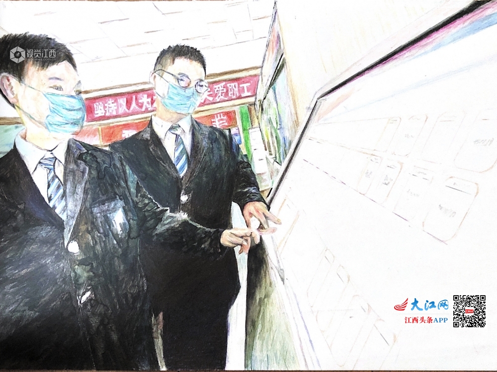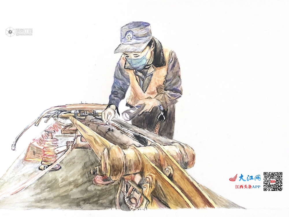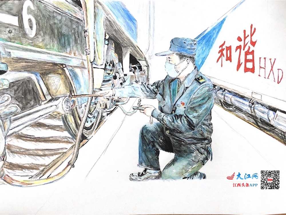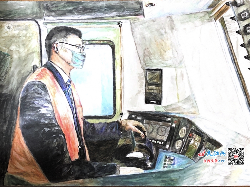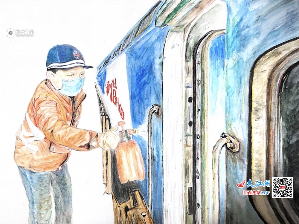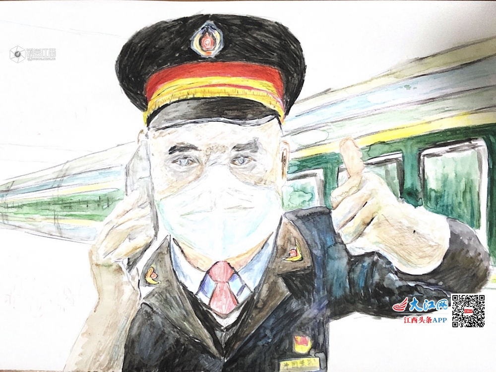 易昊强是南昌局集团公司向塘机务段2020届实习生(其父亲是该段一名火车司机),原本要担任春运临客值乘任务的他,在列车停运的居家休整期间,用彩铅表达他对铁路人抗击疫情的敬意,用漫画画出铁路人抗击疫情的瞬间。